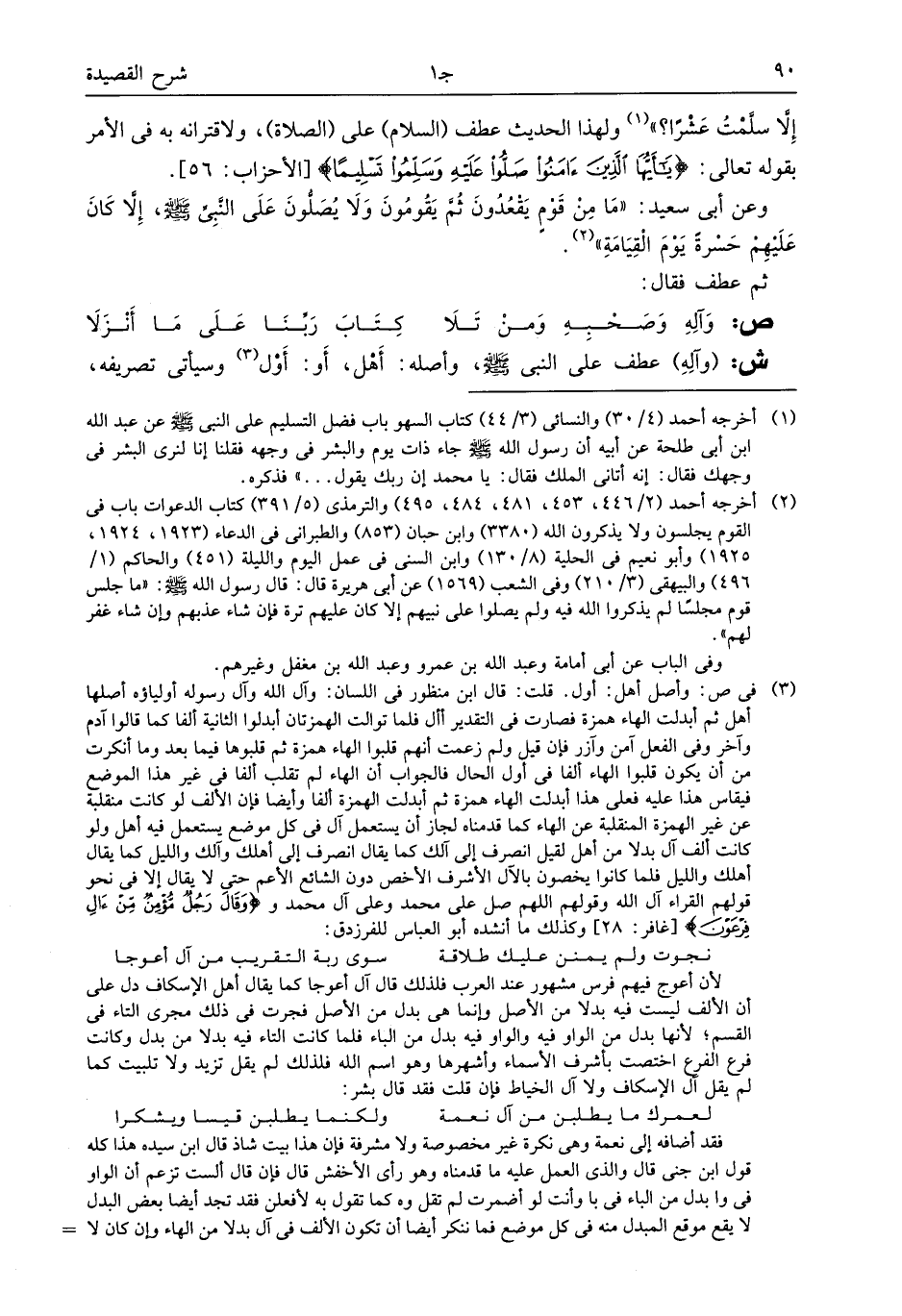 ش: (وآله) عطف على النبى صلى الله عليه وسلم، وأصله: أهل، أو: أول (¬3) وسيأتى تصريفه،