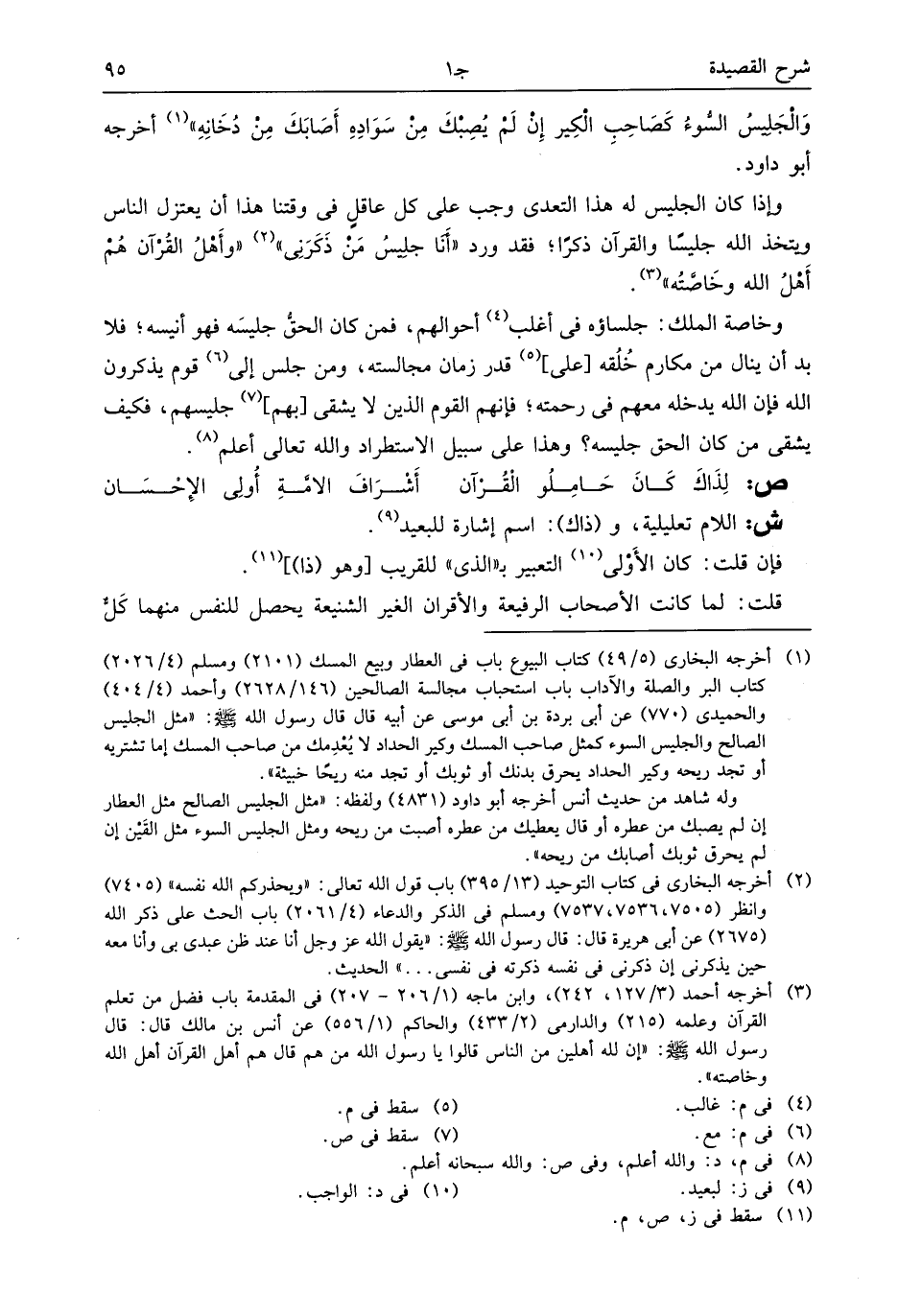 وإذا كان الجليس له هذا التعدى وجب على كل عاقل فى وقتنا هذا أن يعتزل الناس ويتخذ الله جليسا والقرآن ذكرا؛ فقد ورد «أنا جليس من ذكرنى» (¬2) «وأهل القرآن هم أهل الله وخاصّته» (¬3).