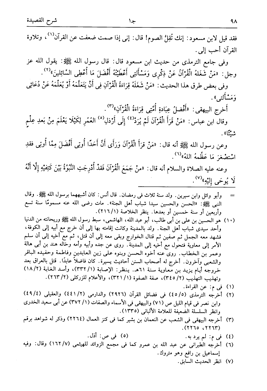 (¬2) أخرجه الترمذى (5/ 45) فى فضائل القرآن (2926) والدارمى (2/ 441) والعقيلى (4/ 49) وابن نصر فى قيام الليل ص (71) والبيهقى فى الأسماء والصفات (1/ 372) عن أبى سعيد الخدرى وانظر السلسلة الضعيفة للعلامة الألبانى (1335).