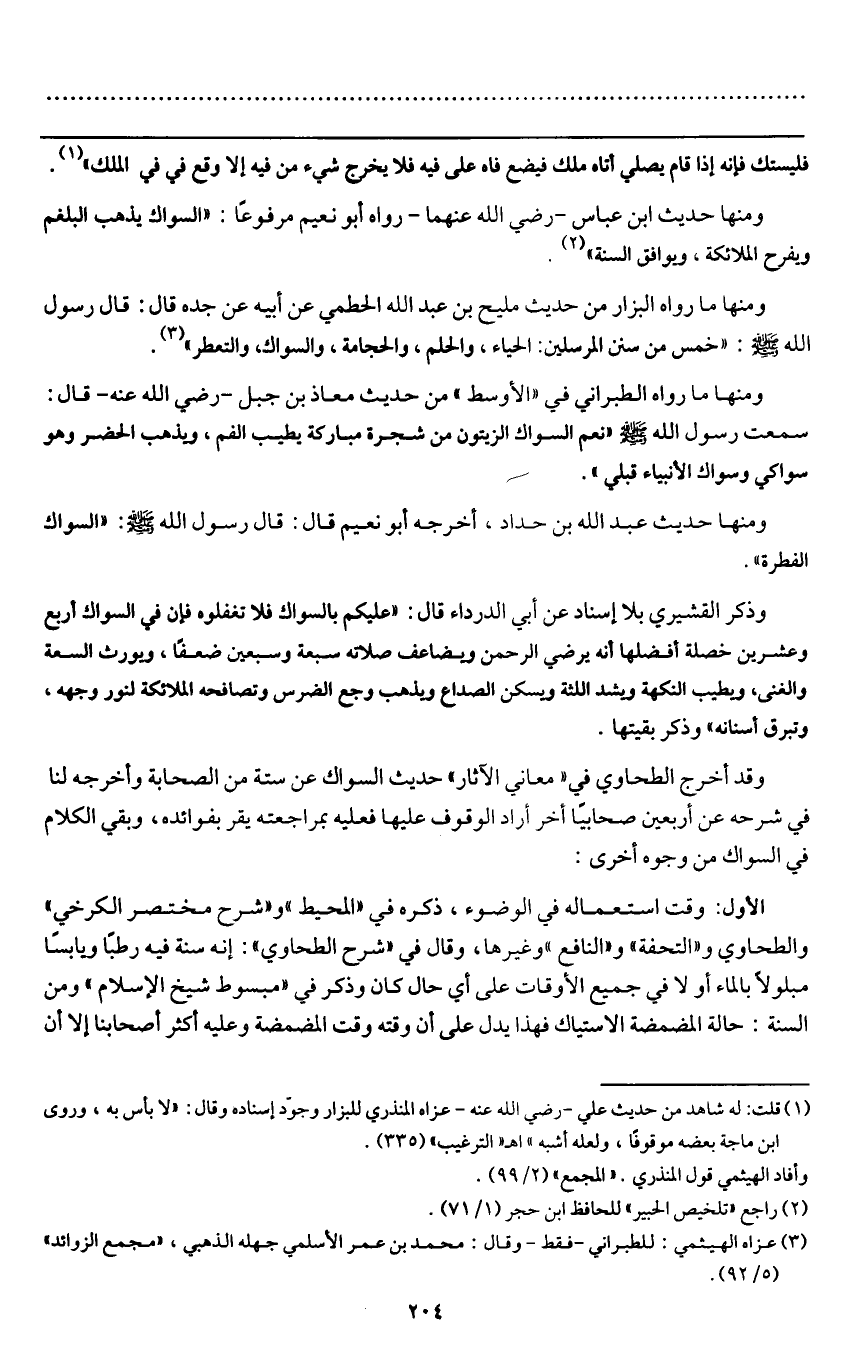 وقد أخرج الطحاوي في " معاني الآثار " حديث السواك عن ستة من الصحابة وأخرجه لنا في شرحه عن أربعين صحابيا أخر، ... أراد الوقوف عليها فعليه بمراجعته يقر بفوائده