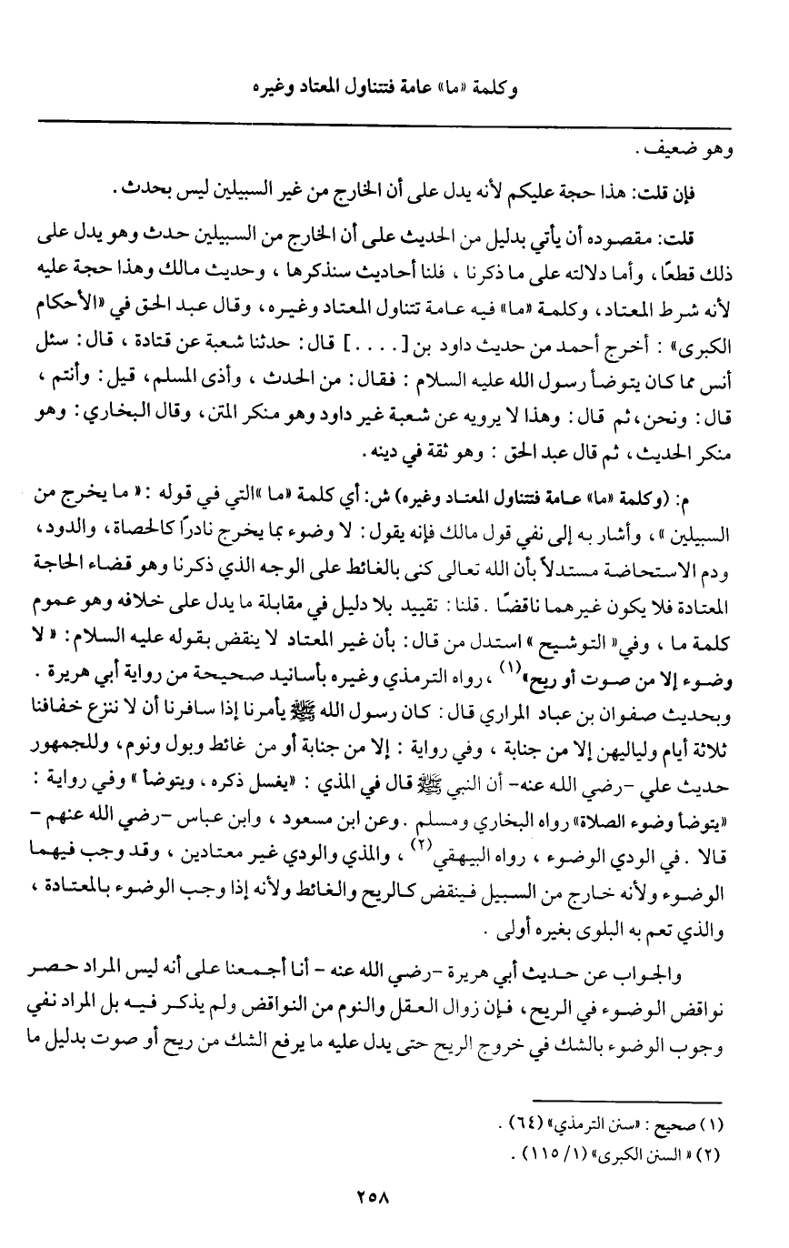 والجواب عن حديث أبي هريرة - رَضِيَ اللَّهُ عَنْهُ - أنا أجمعنا على أنه ليس المراد حصر نواقض الوضوء في الريح، فإن زوال العقل والنوم من النواقض ولم يذكر فيه بل المراد نفي وجوب الوضوء بالشك في خروج الريح حتى يدل عليه ما يرفع الشك من ريح أو صوت بدليل ما