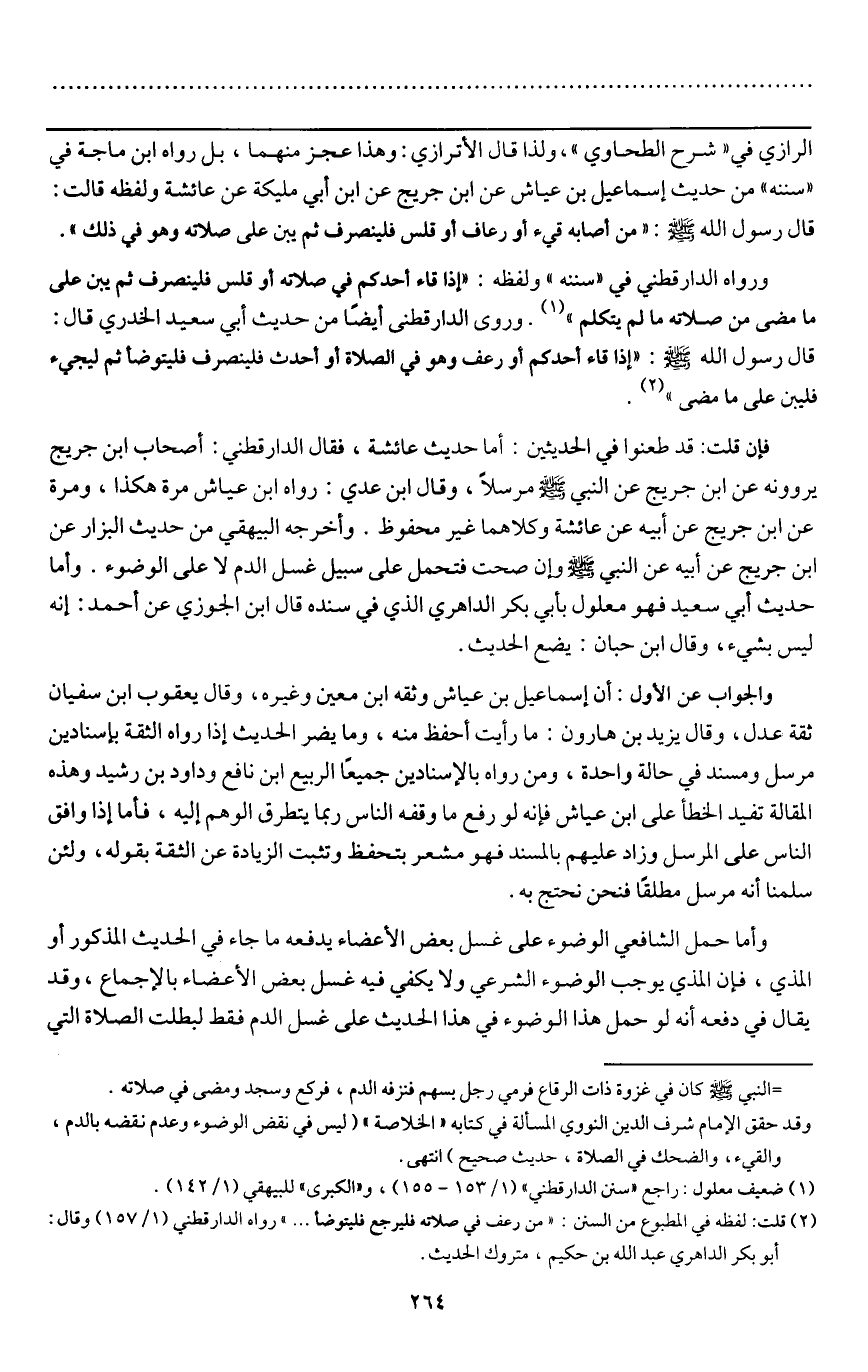 وأما حمل الشافعي الوضوء على غسل بعض الأعضاء يدفعه ما جاء في الحديث المذكور أو المذي، فإن المذي يوجب الوضوء الشرعي ولا يكفي فيه غسل بعض الأعضاء بالإجماع، وقد يقال في دفعه أنه لو حمل هذا الوضوء في هذا الحديث على غسل الدم فقط لبطلت الصلاة التي