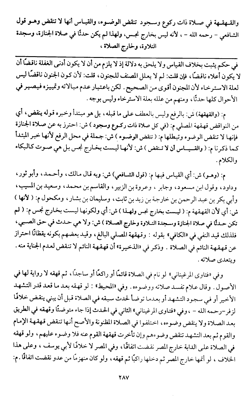 والقهقهة في صلاة ذات ركوع وسجود تنقض الوضوء، والقياس أنها لا تنقض وهو قول الشافعي - رَحِمَهُ اللَّهُ -، لأنه ليس بخارج نجس، ولهذا لم يكن حدثا في صلاة الجنازة، وسجدة التلاوة، وخارج الصلاة،