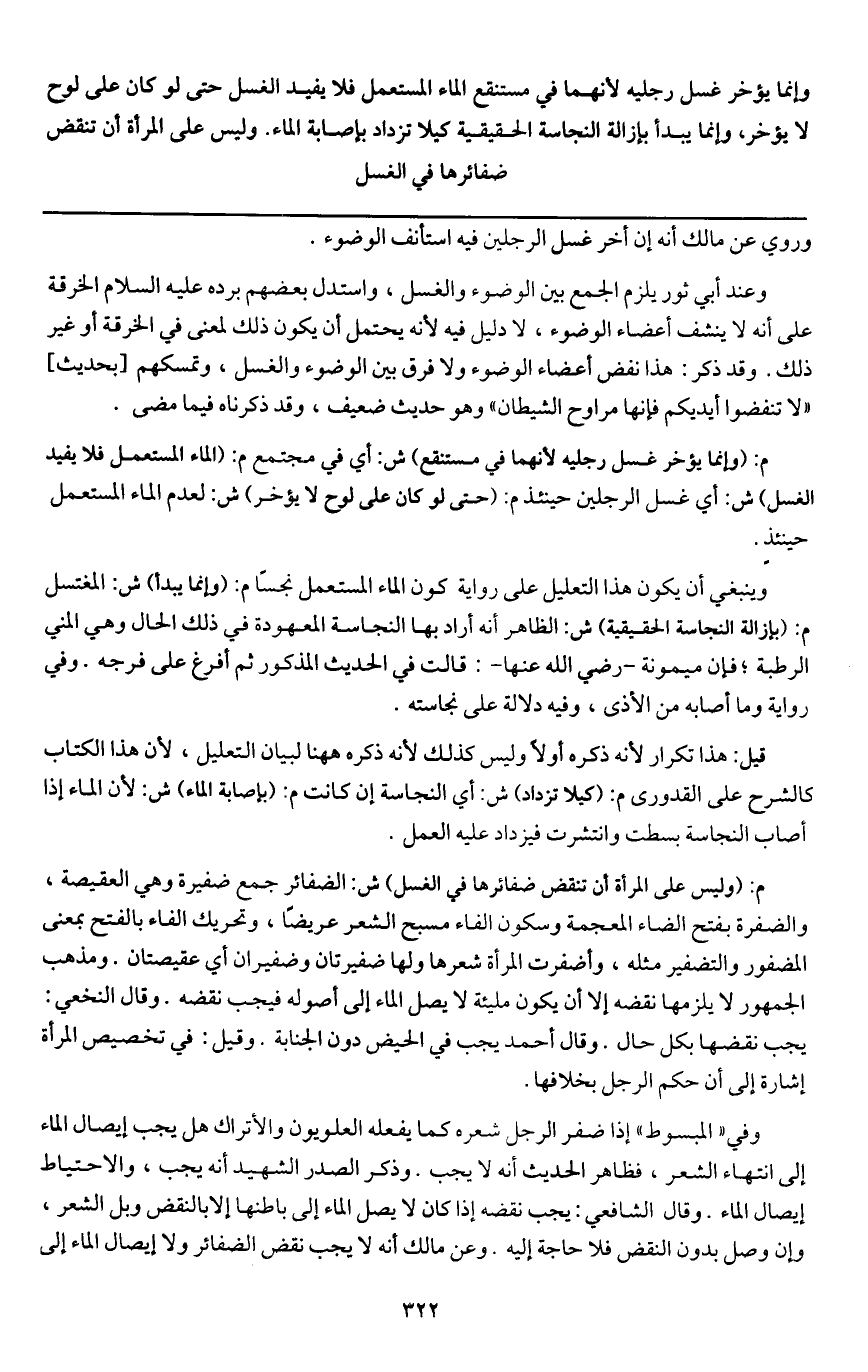 ـــــــــــــــــــــــــــــQوروي عن مالك أنه إن أخر غسل الرجلين فيه استأنف الوضوء.