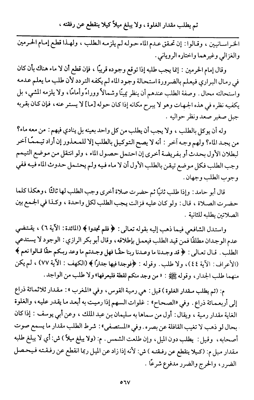 ـــــــــــــــــــــــــــــQالخراسانيين، وقالوا: إن تحقق عدم الماء حوله لم يلزمه الطلب، ولهذا قطع إمام الحرمين والغزالي وغيرهما واختاره الروياني.