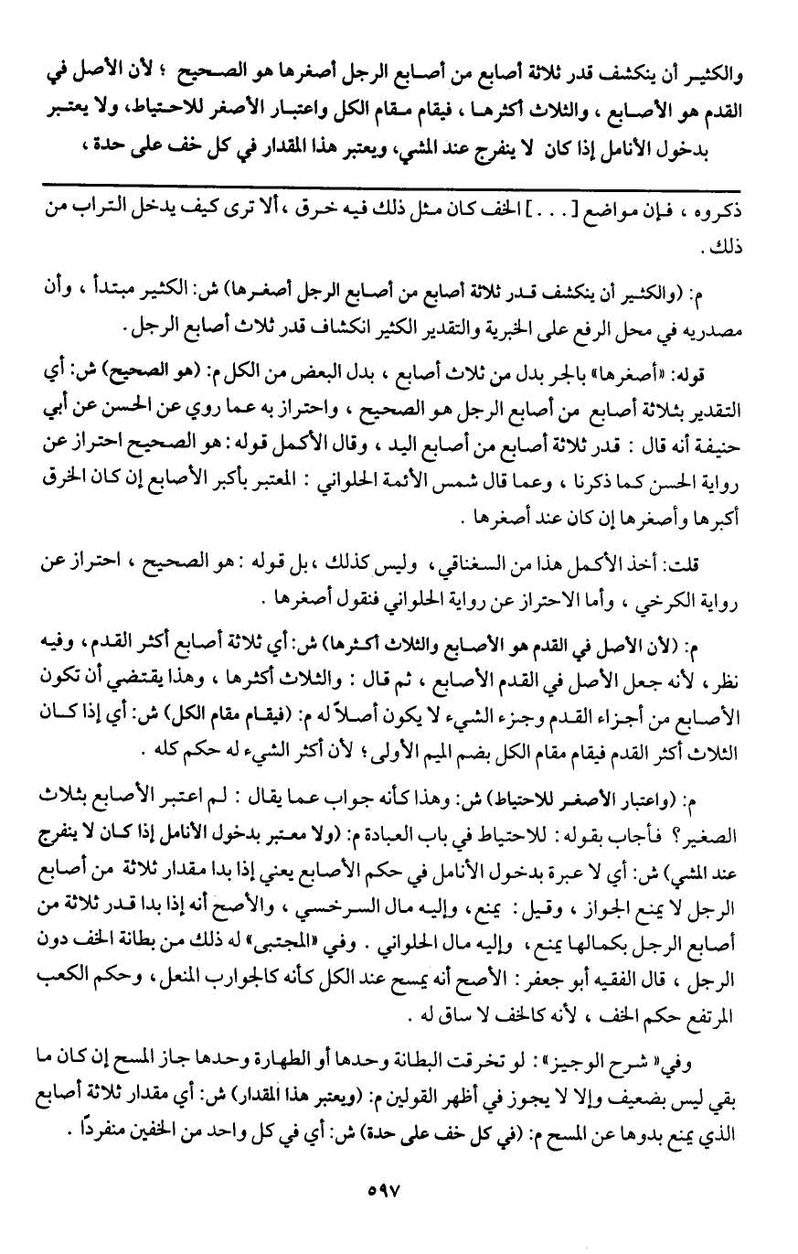 م: (والكثير أن ينكشف قدر ثلاثة أصابع من أصابع الرجل أصغرها) ش: الكثير مبتدأ، وأن مصدرية في محل الرفع على الخبرية، والتقدير الكثير انكشاف قدر ثلاث أصابع الرجل.