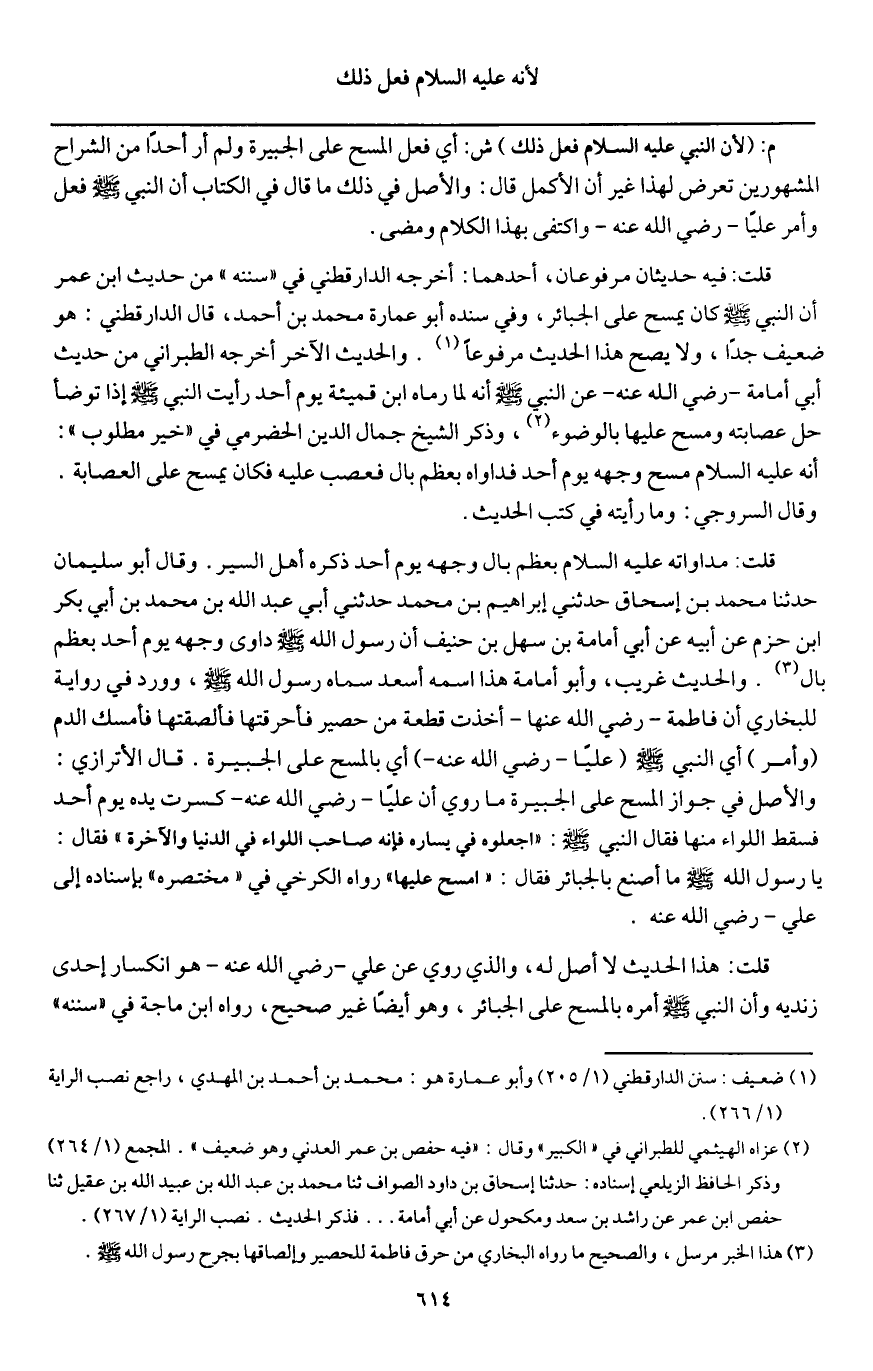 ـــــــــــــــــــــــــــــQم: (لأن النبي - عَلَيْهِ السَّلَامُ - فعل ذلك) ش: أي فعل المسح الجبيرة، ولم أر أحداً من الشراح المشهورين تعرض لهذا، غير أن الأكمل قال: والأصل في ذلك ما قال في الكتاب أن النبي - صَلَّى اللَّهُ عَلَيْهِ وَسَلَّمَ - فعل وأمر علياً - رَضِيَ اللَّهُ عَنْهُ - واكتفى بهذا الكلام ومضى.