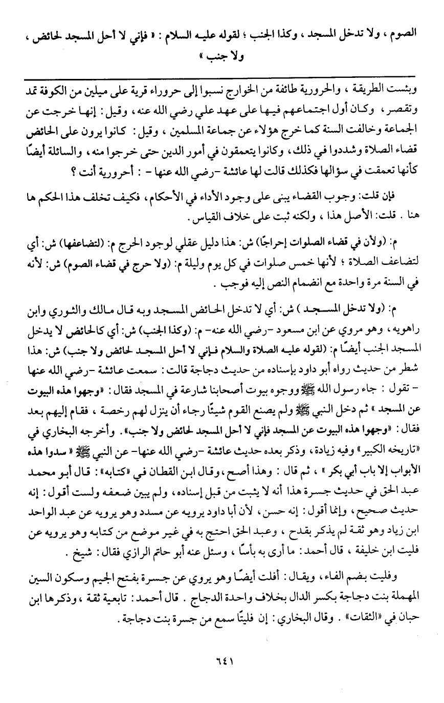 ـــــــــــــــــــــــــــــQوبئست الطريقة، والحرورية طائفة من الخوارج نسبوا إلى حروراء قرية على ميلين من الكوفة تمد وتقصر، وكان أول اجتماعهم فيها على عهد علي - رَضِيَ اللَّهُ عَنْهُ -، وقيل: إنها خرجت عن الجماعة وخالفت السنة كما خرج هؤلاء عن جماعة المسلمين، وقيل: كانوا يرون على الحائض قضاء الصلاة وشددوا في ذلك، وكانوا يتعمقون في أمور الدين حتى خرجوا منه، والسائلة أيضاً كأنها تعمقت في سؤالها فكذلك قالت لها عائشة - رَضِيَ اللَّهُ عَنْهَا -: أحرورية أنت؟