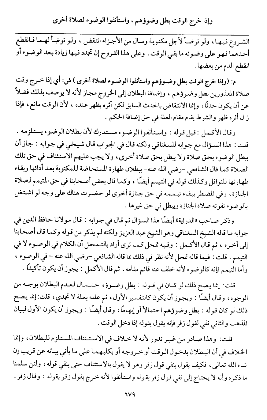 قلت: إنما يصح ذلك لو كان في قوله: بطل وضوؤه احتمال لعدم البطلان بوجه من الوجوه، وقال أيضاً: ويجوز أن يكون كالتفسير الأول، ثم علله بعلة لا تجدي، قلت: إنما يصح ذلك لو كان قوله: بطل وضوؤهم احتمالاً أو إبهاماً، وقال أيضاً: ويجوز أن يكون الأول لبيان المذهب والثاني نفي لقول زفر فإنه يقول بقوله إذا دخل الوقت.