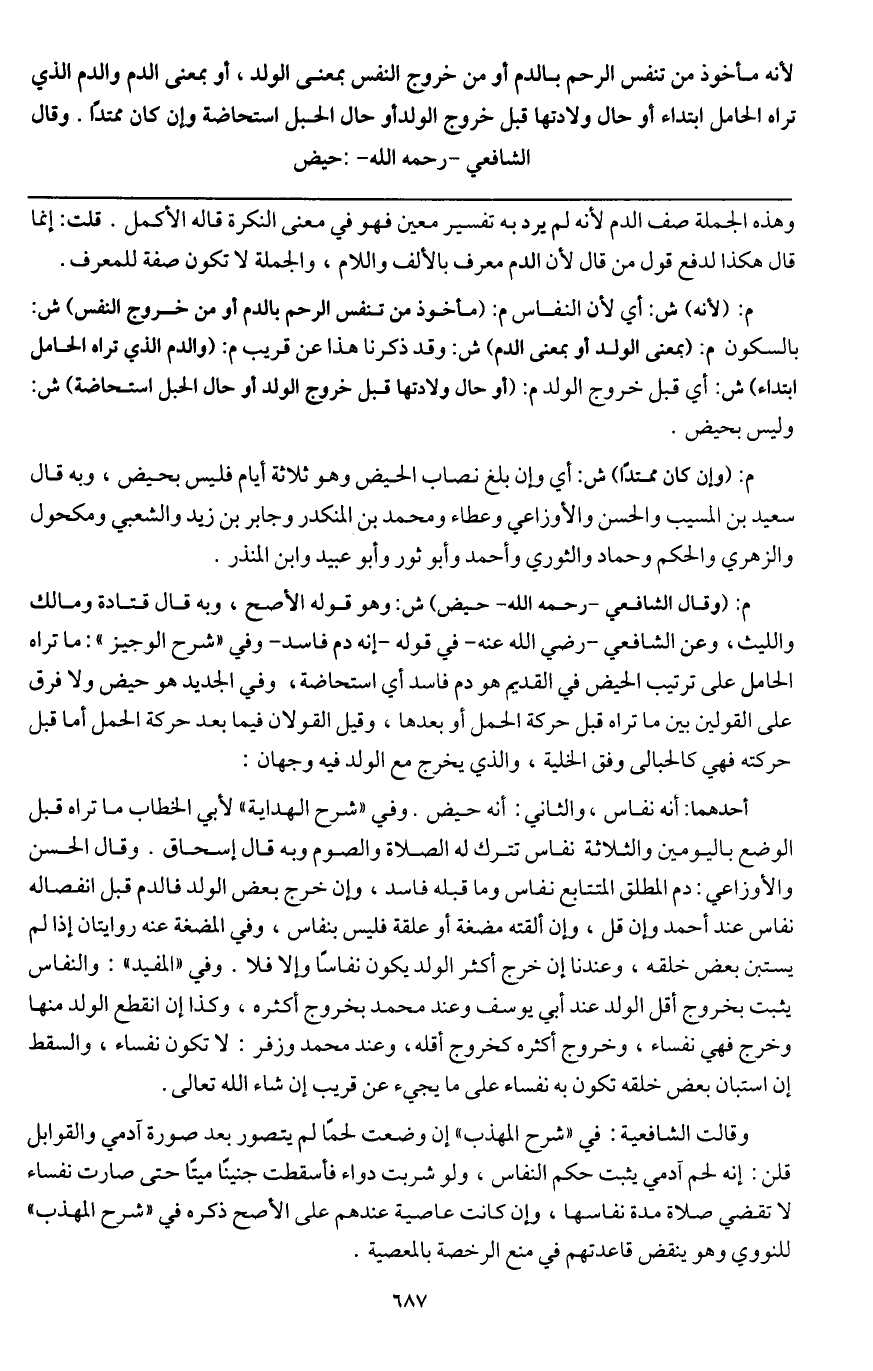 ـــــــــــــــــــــــــــــQلأنه مأخوذ من تنفس الرحم بالدم أو من خروج النفس بمعنى الولد، أو بمعنى الدم والدم الذي تراه الحامل ابتداء أو حال ولادتها قبل خروج الولد أو حال الحبل استحاضة وإن كان ممتدا. وقال الشافعي - رَحِمَهُ اللَّهُ -: حيض