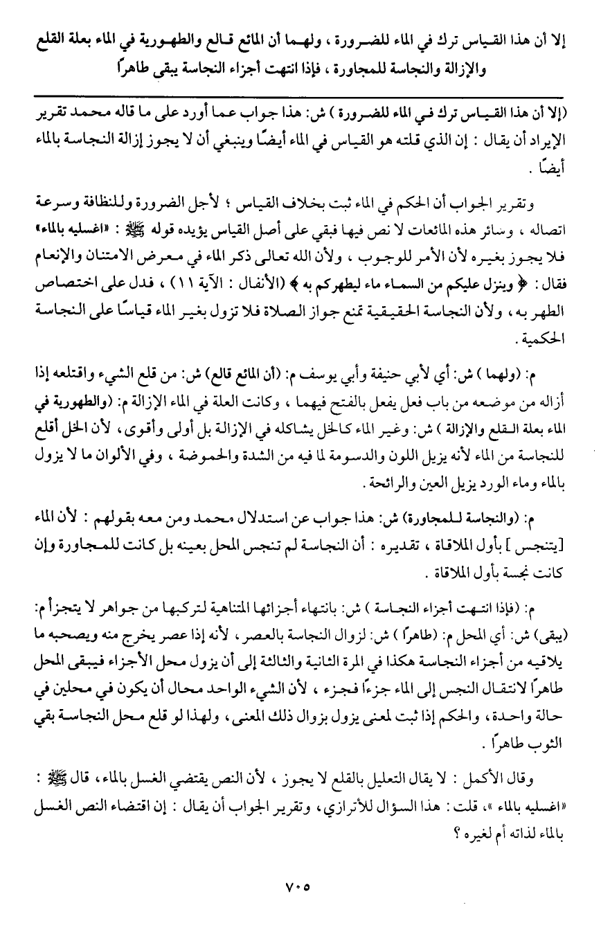 ـــــــــــــــــــــــــــــQ (إلا أن هذا القياس ترك في الماء للضرورة) ش: هذا جواب عما أورد على ما قاله محمد تقرير الإيراد أن يقال: إن الذي قلته هو القياس في الماء أيضاً وينبغي أن لا يجوز إزالة النجاسة بالماء أيضاً.