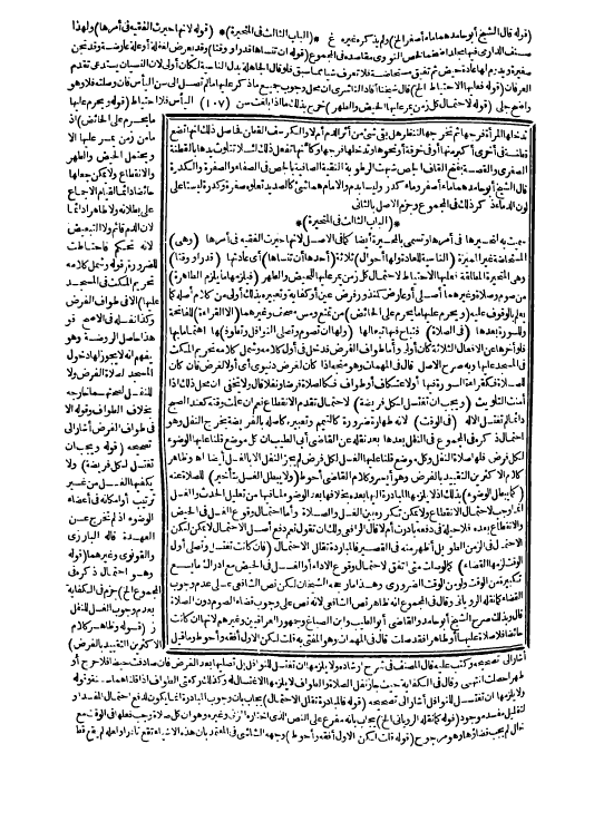 (الْبَابُ الثَّالِثُ فِي الْمُتَحَيِّرَةِ) سُمِّيَتْ بِهِ لِتَحَيُّرِهَا فِي أَمْرِهَا وَتُسَمَّى بِالْمُحَيِّرَةِ أَيْضًا كَمَا فِي الْأَصْلِ لِأَنَّهَا حَيَّرَتْ الْفَقِيهَ فِي أَمْرِهَا (وَهِيَ) الْمُسْتَحَاضَةُ غَيْرُ الْمُمَيِّزَةِ (النَّاسِيَةُ لِلْعَادَةِ وَلَهَا أَحْوَالٌ) ثَلَاثَةٌ (أَحَدُهَا أَنْ تَنْسَاهَا) أَيْ عَادَتَهَا (قَدْرًا وَوَقْتًا) وَهِيَ الْمُتَحَيِّرَةُ الْمُطَلَّقَةُ فَعَلَيْهَا الِاحْتِيَاطُ لِاحْتِمَالِ كُلِّ زَمَنٍ يَمُرُّ عَلَيْهَا لِلْحَيْضِ وَالطُّهْرِ (فَيَلْزَمُهَا مَا يَلْزَمُ الطَّاهِرَةَ) مِنْ صَوْمٍ وَصَلَاةٍ وَغَيْرِهِمَا أَصْلِيٌّ أَوْ عَارِضٌ كَمَنْذُورِ فَرْضِ عَيْنٍ أَوْ كِفَايَةٍ وَتَعْبِيرُهُ بِذَلِكَ أَوْلَى مِنْ كَلَامِ أَصْلِهِ كَمَا يُعْلَمُ بِالْوُقُوفِ عَلَيْهِ (وَيَحْرُمُ عَلَيْهَا مَا يَحْرُمُ عَلَى الْحَائِضِ) مِنْ تَمَتُّعٍ وَمَسَّ مُصْحَفٍ وَغَيْرِهِمَا (إلَّا الْقِرَاءَةَ) لِلْفَاتِحَةِ وَلِلسُّورَةِ بَعْدَهَا (فِي الصَّلَاةِ) فَتُبَاحُ فِيهَا تَبَعًا لَهَا (وَلَهَا أَنْ تَصُومَ وَتُصَلِّي النَّوَافِلَ وَتَطُوفَ) هَا اهْتِمَامًا بِهَا فَلَوْ أَخَّرَهَا عَنْ الْأَفْعَالِ الثَّلَاثَةِ كَانَ أَوْلَى وَأَمَّا طَوَافُ الْفَرْضِ فَدَخَلَ فِي أَوَّلِ كَلَامِهِ وَشَمِلَ كَلَامُهُ تَحْرِيمَ الْمُكْثِ فِي الْمَسْجِدِ عَلَيْهَا وَبِهِ صَرَّحَ الْأَصْلُ قَالَ فِي الْمُهِمَّاتِ وَهُوَ مُتَّجَهٌ إذَا كَانَ لِغَرَضٍ دُنْيَوِيٍّ أَيْ أَوْ لَا لِغَرَضٍ فَإِنْ كَانَ لِلصَّلَاةِ فَكَقِرَاءَةِ السُّورَةِ فِيهَا أَوْ لِاعْتِكَافٍ أَوْ طَوَافٍ فَكَالصَّلَاةِ فَرْضًا وَنَفْلًا قَالَ وَلَا يَخْفَى أَنَّ مَحَلَّ ذَلِكَ إذَا أَمِنَتْ التَّلْوِيثَ