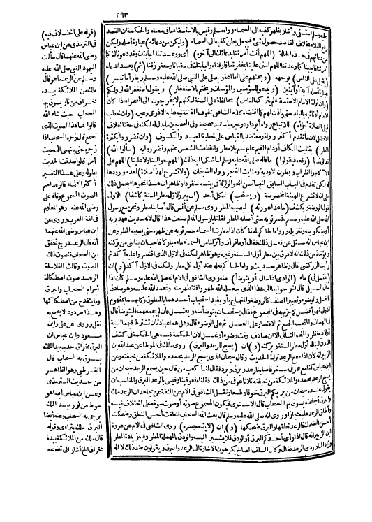 (وَيُسْتَحَبُّ) لِكُلِّ أَحَدٍ (أَنْ يَبْرُزَ لِأَوَّلِ مَطَرِ السَّنَةِ كَاشِفًا) الْأَوْلَى قَوْلُ الرَّوْضَةِ وَيَكْشِفُ (مَا عَدَا عَوْرَتَهُ) لِيُصِيبَهُ الْمَطَرُ رَوَى مُسْلِمٌ عَنْ «أَنَسٍ قَالَ أَصَابَنَا مَطَرٌ وَنَحْنُ مَعَ رَسُولِ اللَّهِ - صَلَّى اللَّهُ عَلَيْهِ وَسَلَّمَ - فَحَسِرَ ثَوْبَهُ حَتَّى أَصَابَهُ الْمَطَرُ فَقُلْنَا يَا رَسُولَ اللَّهِ لِمَ صَنَعْت هَذَا قَالَ؛ لِأَنَّهُ حَدِيثُ عَهْدٍ بِرَبِّهِ أَيْ بِتَكْوِينِهِ وَتَنْزِيلِهِ» وَرَوَاهُ الْحَاكِمُ بِلَفْظٍ «كَانَ إذَا مَطَرَتْ السَّمَاءُ حَسِرَ ثَوْبَهُ عَنْ ظَهْرِهِ حَتَّى يُصِيبَهُ الْمَطَرُ» «وَعَنْ ابْنِ عَبَّاسٍ أَنَّهُ سُئِلَ عَنْ فِعْلِ ذَلِكَ فَقَالَ أَوَمَا قَرَأْت {وَنَزَّلْنَا مِنَ السَّمَاءِ مَاءً مُبَارَكًا} [ق: 9] فَأُحِبُّ أَنْ يَنَالَنِي مِنْ بَرَكَتِهِ» وَيُؤْخَذُ مِنْ ذَلِكَ أَنَّهُ لَا فَرْقَ بَيْنَ مَطَرِ أَوَّلِ السَّنَةِ وَغَيْرِهِ، وَهُوَ ظَاهِرٌ لَكِنَّهُ فِي الْأَوَّلِ الَّذِي اقْتَصَرُوا عَلَيْهِ آكَدُ ثُمَّ رَأَيْت الزَّرْكَشِيَّ قَالَ: وَظَاهِرُ حَدِيثٍ رَوَاهُ الْحَاكِمُ فَعَلَهُ عِنْدَ أَوَّلِ كُلِّ مَطَرٍ وَلَكِنَّهُ فِي الْأَوَّلِ آكَدُ (وَ) أَنْ (يَغْتَسِلَ فِي) مَاءِ (الْوَادِي إذَا سَالَ أَوْ يَتَوَضَّأُ) مِنْهُ وَرَوَى الشَّافِعِيُّ فِي الْأُمِّ أَنَّهُ - صَلَّى اللَّهُ عَلَيْهِ وَسَلَّمَ - كَانَ إذَا سَالَ السَّيْلُ قَالَ أَخَّرَ جَوَابَنَا إلَى هَذَا الَّذِي جَعَلَهُ اللَّهُ طَهُورًا فَنَتَطَهَّر مِنْهُ وَنَحْمَدُ اللَّهَ عَلَيْهِ، وَهُوَ صَادِقٌ بِالْغُسْلِ وَالْوُضُوءِ وَتَعْبِيرُ الْمُصَنِّفِ كَالرَّوْضَةِ وَالْمِنْهَاجِ بِأَوْ يُفِيدُ اسْتِحْبَابَ أَحَدِهِمَا بِالْمَنْطُوقِ وَكِلَيْهِمَا بِمَفْهُومِ الْأَوْلَى فَهُوَ أَفْضَلُ كَمَا جَزَمَ بِهِ فِي الْمَجْمُوعِ فَقَالَ يُسْتَحَبُّ أَنْ يُتَوَضَّأَ مِنْهُ وَيُغْتَسَلَ فَإِنْ لَمْ يَجْمَعْهُمَا فَلْيَتَوَضَّأْ قَالَ فِي الْمُهِمَّاتِ وَالْمُتَّجَهُ الْجَمْعُ ثُمَّ الِاقْتِصَارُ عَلَى الْغُسْلِ ثُمَّ عَلَى الْوُضُوءِ قَالَ وَهَلْ هُمَا عِبَادَتَانِ تُشْتَرَطُ فِيهِمَا النِّيَّةُ أَوْ لَا فِيهِ نَظَرٌ وَالْمُتَّجَهُ الثَّانِي إلَّا إنْ صَادَفَ وَقْتَ وُضُوءٍ أَوْ غُسْلٍ؛ لِأَنَّ الْحِكْمَةَ فِيهِ هِيَ الْحِكْمَةُ فِي كَشْفِ الْبَدَنِ لِيَنَالَهُ أَوَّلُ مَطَرِ السَّنَةِ وَبَرَكَتُهُ