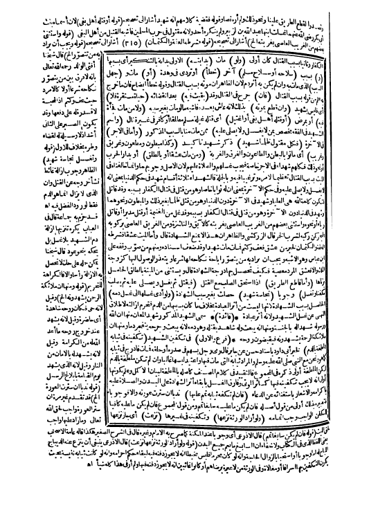 الْكُفَّارِ وَثَانِيًا بِسَبَبِ الْقِتَالِ كَانَ أَوْلَى (وَلَوْ) مَاتَ (بِدَابَّتِهِ) الْأَوْلَى بِدَابَّةٍ بِالتَّنْكِيرِ أَيْ بِسَبَبِهَا (وَ) بِسَبَبِ (سِلَاحِهِ أَوْ سِلَاحِ مُسْلِمٍ) آخَرَ (خَطَأً) أَوْ تَرَدَّى فِي وَهْدَةٍ (أَوْ) مَاتَ وَ (جُهِلَ السَّبَبُ) الَّذِي مَاتَ بِهِ، وَإِنْ لَمْ يَكُنْ بِهِ أَثَرُ دَمٍ؛ لِأَنَّ الظَّاهِرَ أَنَّ مَوْتَهُ بِسَبَبِ الْقِتَالِ وَقَوْلُهُ خَطَأً إيضَاحٌ فَإِنَّ مَا خَرَجَ بِهِ عُلِمَ مِنْ قَوْلِهِ بِسَبَبِ الْقِتَالِ (فَإِنْ) جُرِحَ فِي الْقِتَالِ وَقَدْ (بَقِيَتْ فِيهِ) بَعْدَ انْقِضَائِهِ (حَيَاةٌ مُسْتَقِرَّةٌ فَلَا) أَيْ فَلَيْسَ بِشَهِيدٍ (وَإِنْ قُطِعَ بِمَوْتِهِ) بِذَلِكَ؛ لِأَنَّهُ عَاشَ بَعْدَهُ فَأَشْبَهَ مَا لَوْ مَاتَ بِغَيْرِ سَبَبِهِ (وَلَا مَنْ مَاتَ فَجْأَةً فِيهِ) أَوْ بِمَرَضٍ (أَوْ قَتَلَهُ أَهْلُ بَغْيٍ أَوْ اُغْتِيلَ) أَيْ قَتَلَهُ غِيلَةً مُسْلِمٌ مُطْلَقًا أَوْ كَافِرٌ فِي غَيْرِ قِتَالٍ (وَاسْمُ الشَّهِيدِ فِي الْفِقْهِ مُخَصَّصٌ بِمَنْ لَا يُغَسَّلُ وَلَا يُصَلَّى عَلَيْهِ) مِمَّنْ مَاتَ مِنَّا بِالسَّبَبِ الْمَذْكُورِ (وَأَمَّا فِي الْأَجْرِ) فِي الْآخِرَةِ (فَكُلُّ مَقْتُولٍ ظُلْمًا شَهِيدٌ) ذِكْرُ شَهِيدٍ تَأْكِيدٌ (وَكَذَا مَبْطُونٌ وَمَطْعُونٌ وَغَرِيقٌ وَغَرِيبٌ) أَيْ مَاتُوا بِالْبَطْنِ وَالطَّاعُونِ وَالْغَرَقِ وَالْغُرْبَةِ (وَمَنْ مَاتَ عِشْقًا أَوْ بِالطَّلْقِ) أَوْ بِدَارُ الْحَرْبِ أَوْ نَحْوِ ذَلِكَ فَكُلُّهُمْ شُهَدَاءُ فِي الْأَجْرِ خَاصَّةً فَيَجِبُ غُسْلُهُمْ وَالصَّلَاةُ عَلَيْهِمْ؛ لِأَنَّ الْأَصْلَ وُجُوبُهُمَا، وَإِنَّمَا خَالَفْنَاهُ فِي الْمَيِّتِ بِسَبَبِ الْقِتَالِ تَعْظِيمًا لِأَمْرِهِ وَتَرْغِيبًا فِيهِ وَبِالْجُمْلَةِ فَالشُّهَدَاءُ ثَلَاثَةُ أَقْسَامٍ.
