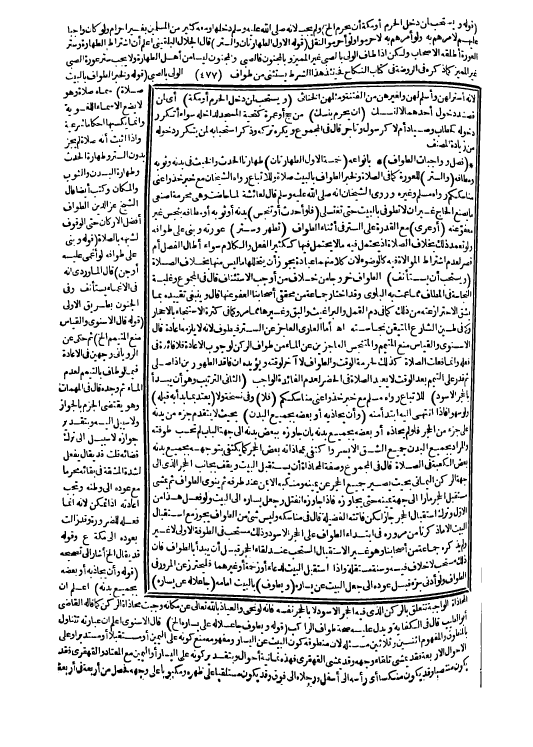 (قَوْلُهُ الْأَوَّلُ الطَّهَارَتَانِ وَالسَّتْرُ) قَالَ الْجَلَالُ الْبُلْقِينِيُّ اعْلَمْ أَنَّ اشْتِرَاطَ الطَّهَارَةِ وَسَتْرَ الْعَوْرَةِ أَطْلَقَهُ الْأَصْحَابُ وَلَكِنْ إذَا طَافَ الْوَلِيُّ بِالصَّبِيِّ غَيْرِ الْمُمَيِّزِ وَبِالْمَجْنُونِ فَالصَّبِيُّ وَالْمَجْنُونُ لَيْسَا مِنْ أَهْلِ الطَّهَارَةِ، وَلَا يَجِبُ سَتْرُ عَوْرَةِ الصَّبِيِّ غَيْرِ الْمُمَيِّزِ كَمَا ذَكَرَهُ فِي الرَّوْضَةِ فِي كِتَابِ النِّكَاحِ فَحِينَئِذٍ هَذَا الشَّرْطُ يُسْتَثْنَى مِنْ طَوَافِ الْوَلِيِّ بِالصَّبِيِّ (قَوْلُهُ وَلِخَبَرِ «الطَّوَافُ بِالْبَيْتِ صَلَاةٌ» ) سَمَّاهُ صَلَاةً، وَهُوَ لَا يَضَعُ الْأَسْمَاءَ اللُّغَوِيَّةَ وَإِنَّمَا يُكْسِبُهَا أَحْكَامًا شَرْعِيَّةً وَإِذَا أَثْبَتَ أَنَّهُ صَلَاةٌ لَمْ يَجُزْ بِدُونِ السَّتْرِ وَطَهَارَةِ الْحَدَثِ وَطَهَارَةِ الْبَدَنِ وَالثَّوْبِ وَالْمَكَانِ وَكَتَبَ أَيْضًا قَالَ الشَّيْخُ عِزُّ الدِّينِ الطَّوَافُ أَفْضَلُ الْأَرْكَانِ حَتَّى الْوُقُوفُ لِشَبَهِهِ بِالصَّلَاةِ (قَوْلُهُ وَبَنَى عَلَى طَوَافِهِ لَوْ أُغْمِيَ عَلَيْهِ أَوْ جُنَّ) قَالَ الْمَاوَرْدِيُّ إنَّهُ فِي الْإِغْمَاءِ يَسْتَأْنِفُ وَفِي الْجُنُونِ بِطَرِيقِ الْأَوْلَى (قَوْلُهُ قَالَ الْإِسْنَوِيُّ وَالْقِيَاسُ مَنْعُ التَّيَمُّمِ إلَخْ) ثُمَّ حَكَى عَنْ الرُّويَانِيِّ وَجْهَيْنِ فِي الْإِعَادَةِ فِيمَا لَوْ طَافَ بِالتَّيَمُّمِ لِعَدَمِ الْمَاءِ ثُمَّ وَجَدَهُ قَالَ فِي الْمُهِمَّاتِ، وَهُوَ يَقْتَضِي الْجَزْمَ بِالْجَوَازِ، وَلَا سَبِيلَ إلَيْهِ وَبِتَقْدِيرِ جَوَازِهِ لَا سَبِيلَ إلَى تَرْكِ قَضَائِهِ قُلْت قَدْ يُقَالُ يُفْعَلُ لِشِدَّةِ الْمَشَقَّةِ فِي بَقَائِهِ مُحْرِمًا مَعَ عَوْدِهِ إلَى وَطَنِهِ وَتَجِبُ إعَادَتُهُ إذَا تَمَكَّنَ؛ لِأَنَّهُ إنَّمَا فَعَلَهُ لِلضَّرُورَةِ وَقَدْ زَالَتْ بِعَوْدِهِ إلَى مَكَّةَ ع قَوْلُهُ قَدْ يُقَالُ إلَخْ أَشَارَ إلَى تَصْحِيحِهِ.