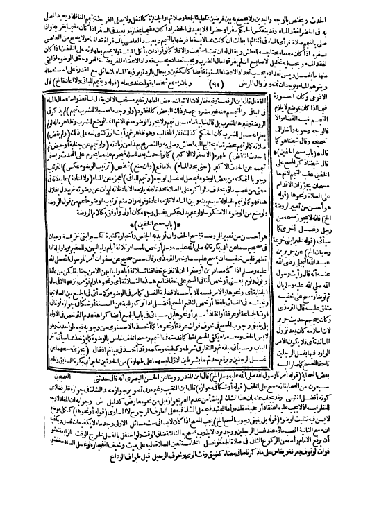 (بَابُ مَسْحِ الْخُفَّيْنِ) هُوَ أَحْسَنُ مِنْ تَعْبِيرِ الرَّوْضَةِ " بِمَسْحِ الْخُفِّ " وَإِنْ أُرِيدَ بِهِ الْجِنْسُ وَأَخْبَارُهُ كَثِيرَةٌ كَخَبَرِ ابْنَيْ خُزَيْمَةَ وَحِبَّانَ فِي صَحِيحَيْهِمَا عَنْ أَبِي بَكْرَةَ «أَنَّهُ - صَلَّى اللَّهُ عَلَيْهِ وَسَلَّمَ - أَرْخَصَ لِلْمُسَافِرِ ثَلَاثَةَ أَيَّامٍ وَلَيَالِيَهُنَّ وَلِلْمُقِيمِ يَوْمًا وَلَيْلَةً إذَا تَطَهَّرَ فَلَبِسَ خُفَّيْهِ أَنْ يَمْسَحَ عَلَيْهِمَا» ، وَخَبَرُ التِّرْمِذِيِّ وَقَالَ حَسَنٌ صَحِيحٌ عَنْ صَفْوَانَ «أَمَرَنَا رَسُولُ اللَّهِ - صَلَّى اللَّهُ عَلَيْهِ وَسَلَّمَ - إذَا كُنَّا مُسَافِرِينَ أَوْ سَفْرًا أَنْ لَا نَنْزِعَ خِفَافَنَا ثَلَاثَةَ أَيَّامٍ وَلَيَالِيَهُنَّ إلَّا مِنْ جَنَابَةٍ لَكِنْ مِنْ غَائِطٍ وَبَوْلٍ وَنَوْمٍ يَعْنِي أَرْخَصَ لَنَا فِي الْمَسْحِ عَلَى خِفَافِنَا» مَعَ هَذِهِ الثَّلَاثَةِ أَيْ وَنَحْوِهَا وَلَمْ نُؤْمَرْ بِنَزْعِهَا إلَّا فِي حَالِ الْجَنَابَةِ أَيْ وَنَحْوِهَا وَالْأَمْرُ فِيهِ لِلْإِبَاحَةِ لِأَفْضَلِيَّةِ الْغُسْلِ كَمَا مَرَّ فِي الْوُضُوءِ وَكَمَا سَيَأْتِي فِي الْجَمْعِ بَيْنَ الصَّلَاتَيْنِ وَلِمَجِيئِهِ فِي النَّسَائِيّ بِلَفْظِ «أَرْخَصَ لَنَا» نَعَمْ الْمَسْحُ أَفْضَلُ إذَا تَرَكَهُ رَغْبَةً عَنْ السُّنَّةِ أَوْ شَكًّا فِي جَوَازِهِ أَوْ خَافَ فَوْتَ الْجَمَاعَةِ أَوْ عَرَفَةَ أَوْ إنْقَاذَ أَسِيرٍ أَوْ نَحْوَهَا بَلْ سَيَأْتِي فِي بَابِ الْجَمْعِ أَيْضًا كَرَاهَةَ عَدَمِ التَّرَخُّصِ فِي الْأُولَى بَلْ يَنْبَغِي وُجُوبُ الْمَسْحِ فِي خَوْفِ فَوَاتِ عَرَفَةَ أَوْ نَحْوِهَا كَمَا أَخَذَهُ الْإِسْنَوِيُّ مِنْ وُجُوبِهِ فِيمَا لَوْ أَحْدَثَ وَهُوَ لَابِسُ الْخُفِّ وَمَعَهُ مَاءٌ يَكْفِي الْمَسْحَ فَقَطْ كَمَا قَدَّمْته فِي التَّيَمُّمِ، وَمَسْحُ الْخُفِّ خَاصٌّ بِالْوُضُوءِ كَمَا يُؤْخَذُ مِمَّا سَيَأْتِي آخِرَ الْبَابِ وَسَيَأْتِي بَيَانُهُ