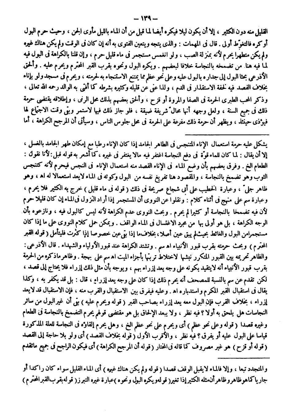 وَيُمْكِنُ حَمْلُ كَلَامِ النَّوَوِيِّ عَلَى مَا إذَا كَانَ مُسْتَجْمِرًا مِنْ الْبَوْلِ وَالْغَائِطِ بِحَيْثُ لَمْ يَبْقَ عَيْنٌ أَصْلًا، بِخِلَافِ مَا إذَا بَقِيَ عَيْنٌ خُصُوصًا إذَا كَثُرَتْ فَلْيُتَأَمَّلْ (قَوْلُهُ: الْقَبْرِ الْمُحْتَرَمِ) وَبَحَثَ حُرْمَتَهُ بِقُرْبِ قُبُورِ الْأَنْبِيَاءِ اهـ سم.