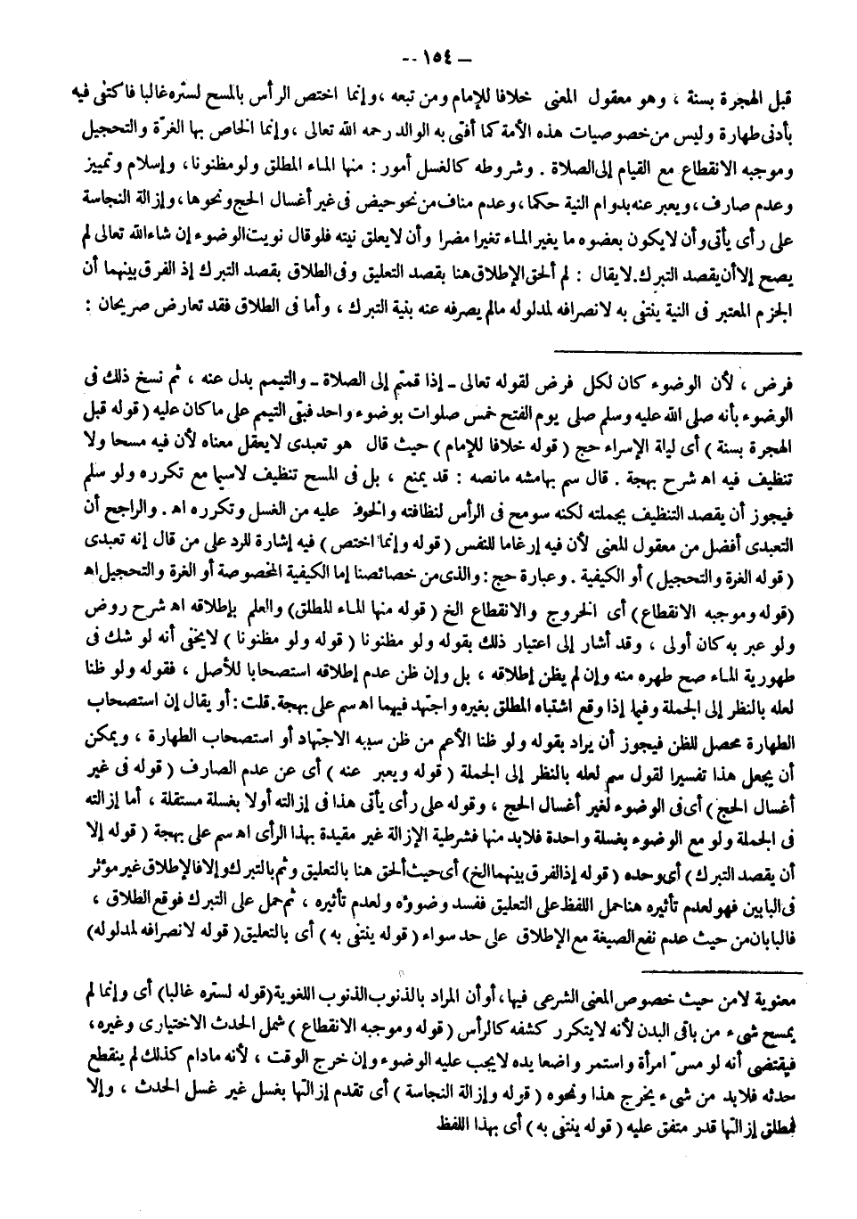 قُلْت: أَوْ يُقَالُ إنَّ اسْتِصْحَابَ الطَّهَارَةِ مُحَصِّلٌ لِلظَّنِّ فَيَجُوزُ أَنْ يُرَادَ بِقَوْلِهِ وَلَوْ ظَنًّا الْأَعَمَّ مِنْ ظَنِّ سَبَبِهِ الِاجْتِهَادَ أَوْ اسْتِصْحَابَ الطَّهَارَةِ، وَيُمْكِنُ أَنْ يُجْعَلَ هَذَا تَفْسِيرًا لِقَوْلِ سم لَعَلَّهُ بِالنَّظَرِ إلَى الْجُمْلَةِ (قَوْلُهُ: وَيُعَبَّرُ عَنْهُ) أَيْ عَنْ عَدَمِ الصَّارِفِ (قَوْلُهُ: فِي غَيْرِ أَغْسَالِ الْحَجِّ) أَيْ فِي الْوُضُوءِ لِغَيْرِ أَغْسَالِ الْحَجِّ، وَقَوْلُهُ عَلَى رَأْيٍ يَأْتِي هَذَا فِي إزَالَتِهِ أَوَّلًا بِغَسْلَةٍ مُسْتَقِلَّةٍ، أَمَّا إزَالَتُهُ فِي الْجُمْلَةِ وَلَوْ مَعَ الْوُضُوءِ بِغَسْلَةٍ وَاحِدَةٍ فَلَا بُدَّ مِنْهَا فَشَرْطِيَّةُ الْإِزَالَةِ غَيْرُ مُقَيَّدَةٍ بِهَذَا الرَّأْيِ اهـ سم.