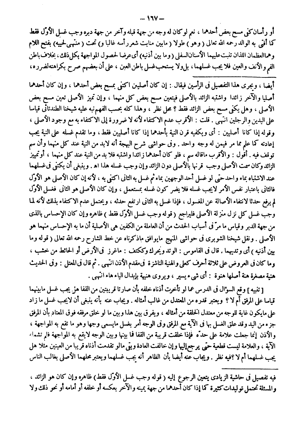 ثُمَّ قَالَ فِي الْمُعْتَلِّ: وَفِي الْحَدِيثِ: هُنَيَّةُ، مُصَغَّرَةُ هَنَةٍ أَصْلُهَا هَنْوَةٌ: أَيْ شَيْءٌ يَسِيرٌ، وَيُرْوَى هُنَيْهَةٌ: إبْدَالُ الْيَاءِ هَاءً انْتَهَى. [تَنْبِيهٌ] وَقَعَ السُّؤَالُ فِي الدَّرْسِ عَمَّا لَوْ تَأَخَّرَتْ أُذُنَاهُ خَلْفَهُ بِأَنْ صَارَتَا قَرِيبَتَيْنِ مِنْ الْقَفَا هَلْ يَجِبُ غَسْلُ مَا بَيْنَهُمَا قِيَاسًا عَلَى الْمِرْفَقِ أَمْ لَا؟ وَيُعْتَبَرُ قَدْرُهُ مِنْ الْمُعْتَدِلِ مِنْ غَالِبِ أَمْثَالِهِ.