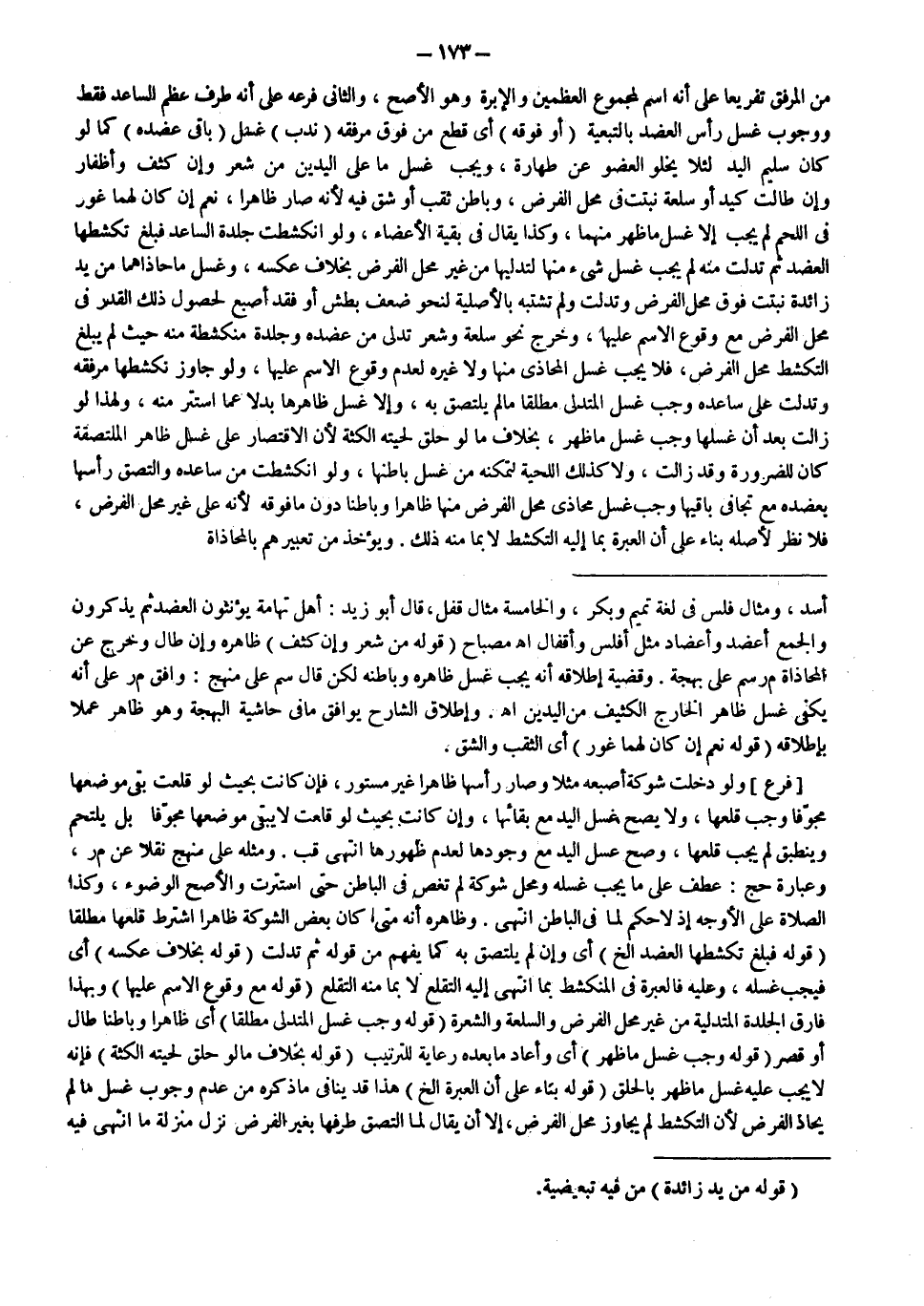 ـــــــــــــــــــــــــــــSوَمِثَالُ فَلْسٍ فِي لُغَةِ تَمِيمٍ وَبَكْرٍ، وَالْخَامِسَةُ مِثَالُ قُفْلٍ، قَالَ أَبُو زَيْدٍ: أَهْلُ تِهَامَةَ يُؤَنِّثُونَ الْعَضُدَ ثُمَّ يُذَكِّرُونَ وَالْجَمْعُ أَعْضُدٍ وَأَعْضَادٍ مِثْلُ أَفْلُسٍ وَأَقْفَالٍ اهـ مِصْبَاحٌ (قَوْلُهُ: مِنْ شَعْرٍ وَإِنْ كَثُفَ) ظَاهِرُهُ وَإِنْ طَالَ وَخَرَجَ عَنْ الْمُحَاذَاةِ م ر سم عَلَى بَهْجَةٍ.