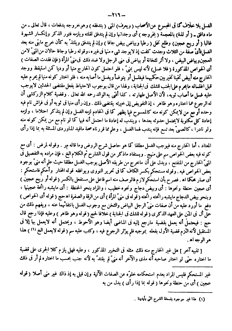 ـــــــــــــــــــــــــــــSالْمُعْتَادِ، أَمَّا الْخَارِجُ مِنْهُ فَيُوجِبُ الْغُسْلَ مُطْلَقًا كَمَا هُوَ حَاصِلُ شَرْحِ الرَّوْضِ وَمَا قَالَهُ م ر.