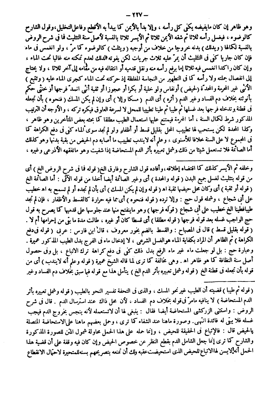 وَصُورَةُ مَا هُنَا عِنْدَ الشِّفَاءِ كَمَا تَرَى، وَحَمَلَ بَعْضُهُمْ مَا هُنَا عَلَى الِاسْتِحَاضَةِ الْمُتَّصِلَةِ بِالْحَيْضِ قَالَ: فَالِاتِّبَاعُ فِي الْحَقِيقَةِ لِلْحَيْضِ، وَإِنَّمَا حَمَلَهُ عَلَى هَذَا الْحَمْلِ مُحَاوَلَةُ شُمُولِ الْمَتْنِ لِلصُّورَةِ الْمَذْكُورَةِ وَالشَّارِحُ كَمَا تَرَى إنَّمَا جَعَلَ الشَّامِلَ الدَّمَ بِقَطْعِ النَّظَرِ عَنْ خُصُوصِ الْحَيْضِ وَإِنْ كَانَ فِيهِ وَقْفَةٌ عَلَى أَنَّ قَضِيَّةَ هَذَا الْحَمْلِ أَنَّهُ لَا يُسَنُّ لَهَا الِاتِّبَاعُ لِلْحَيْضِ الَّذِي اُسْتُحِيضَتْ عَقِبَهُ وَلَك أَنْ تَمْنَعَهُ بِتَصْرِيحِهِمْ بِسَنِّهِ لِلْمُتَحَيِّرَةِ لِاحْتِمَالِ الِانْقِطَاعِ