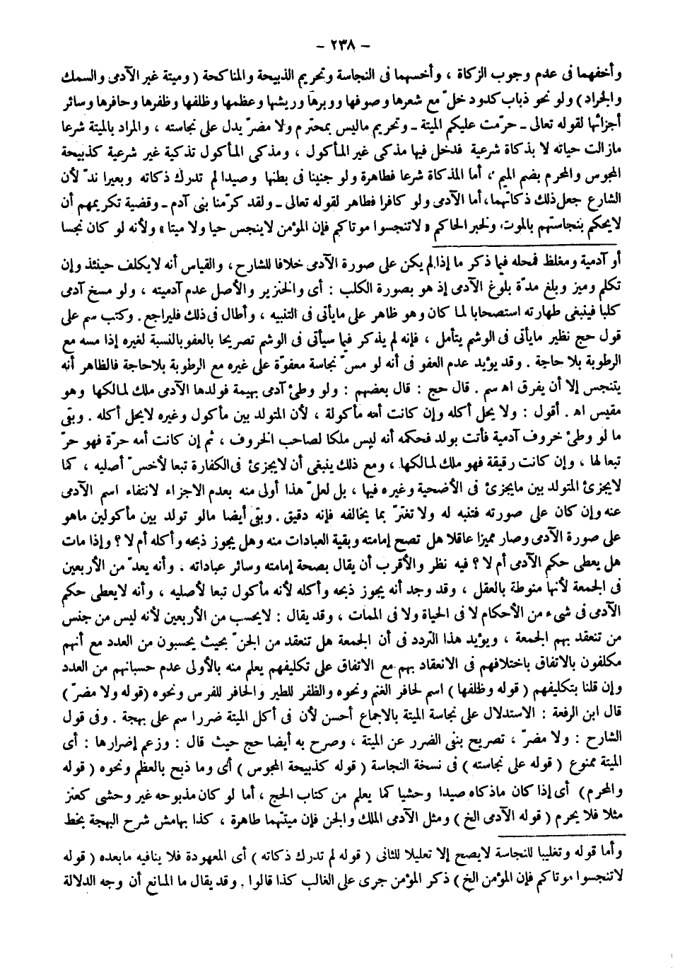 (قَوْلُهُ: لَمْ تُدْرَكْ ذَكَاتُهُ) أَيْ الْمَعْهُودَةُ فَلَا يُنَافِيهِ مَا بَعْدَهُ (قَوْلُهُ: لَا تُنَجِّسُوا مَوْتَاكُمْ، فَإِنَّ الْمُؤْمِنَ إلَخْ) ذِكْرُ الْمُؤْمِنِ جَرَى عَلَى الْغَالِبِ كَذَا قَالُوا.