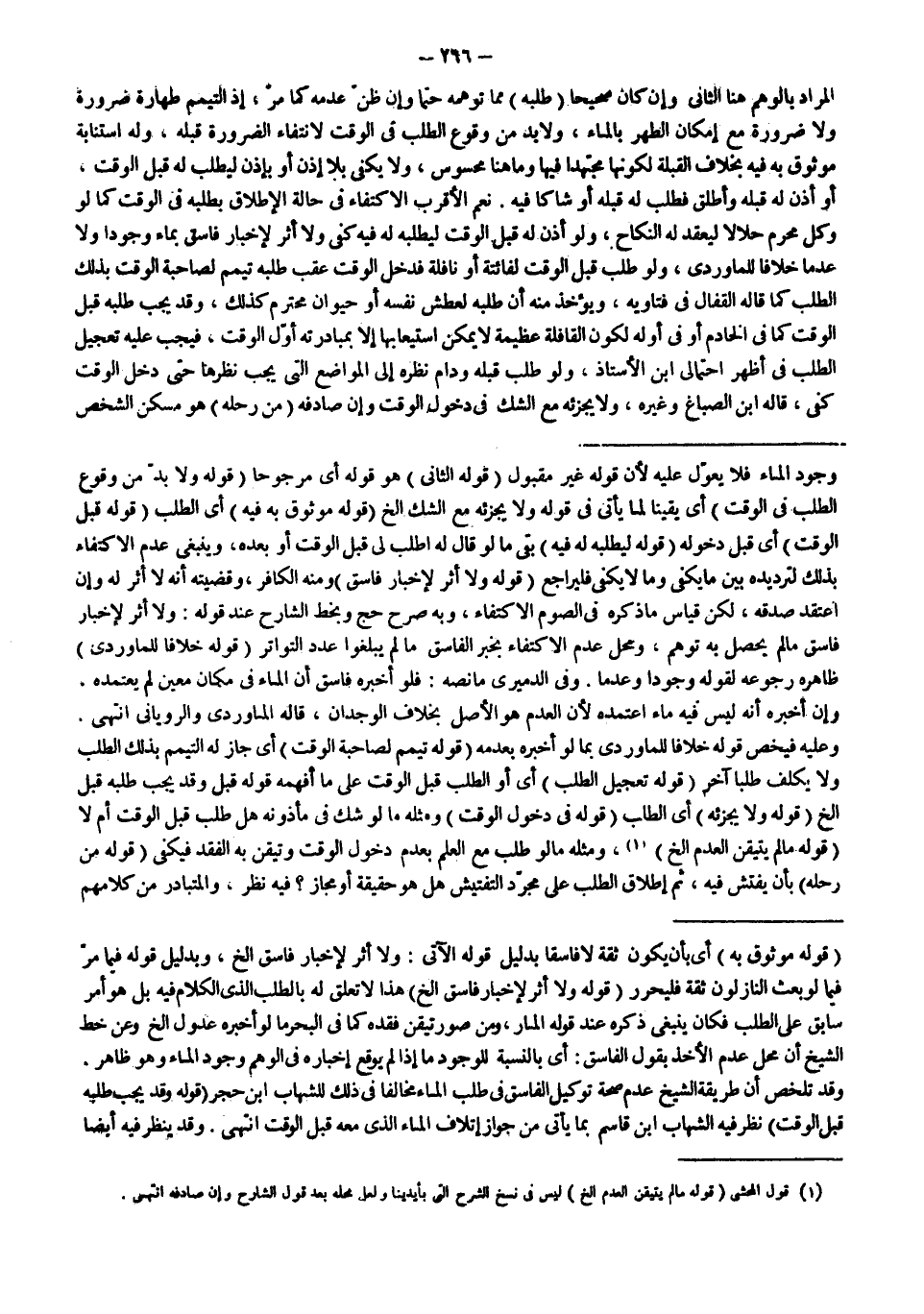 وَقَدْ تَلَخَّصَ أَنَّ طَرِيقَةَ الشَّيْخِ عَدَمُ صِحَّةِ تَوْكِيلِ الْفَاسِقِ فِي طَلَبِ الْمَاءِ مُخَالِفًا فِي ذَلِكَ لِلشِّهَابِ ابْنِ حَجَرٍ (قَوْلُهُ: وَقَدْ يَجِبُ طَلَبُهُ قَبْلَ الْوَقْتِ) نَظَرَ فِيهِ الشِّهَابُ ابْنُ قَاسِمٍ بِمَا يَأْتِي مِنْ جَوَازِ إتْلَافِ الْمَاءِ الَّذِي مَعَهُ قَبْلَ الْوَقْتِ انْتَهَى. وَقَدْ يُنْظَرُ فِيهِ أَيْضًا