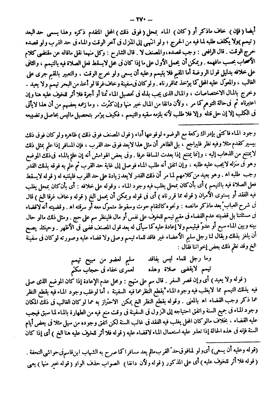 ـــــــــــــــــــــــــــــSوُجُودُ الْمَاءِ فَاكْتَفَى بِإِدْرَاكِ رَكْعَةٍ مَعَ الْوُضُوءِ لَوُقُوعِهَا أَدَاءً (قَوْلُ الْمُصَنِّفِ فَوْقَ ذَلِكَ) ظَاهِرُهُ وَلَوْ كَانَ فَوْقَ ذَلِكَ بِيَسِيرٍ كَقَدَمٍ مَثَلًا وَفِيهِ نَظَرٌ فَلْيُرَاجَعْ، بَلْ الظَّاهِرُ أَنَّ مِثْلَ هَذَا لَا يُعَدُّ فَوْقَ حَدِّ الْقُرْبِ، فَإِنَّ الْمُسَافِرَ إذَا عَلِمَ بِمِثْلِ ذَلِكَ لَا يَمْتَنِعُ مِنْ الذَّهَابِ إلَيْهِ، وَإِنَّمَا يَمْتَنِعُ إذَا بَعُدَتْ الْمَسَافَةُ عُرْفًا.