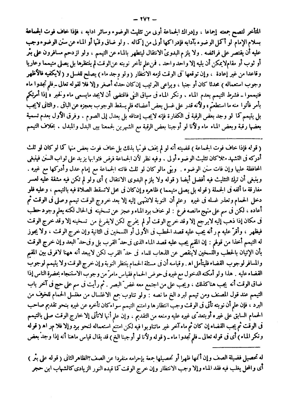 الْمُتَأَخِّرِ لِتَصِحَّ جُمُعَتُهُ إجْمَاعًا، وَإِدْرَاكُ الْجَمَاعَةِ أَوْلَى مِنْ تَثْلِيثِ الْوُضُوءِ وَسَائِرِ آدَابِهِ، فَإِذَا خَافَ فَوْتَ الْجَمَاعَةِ بِسَلَامِ الْإِمَامِ لَوْ أَكْمَلَ الْوُضُوءَ بِآدَابِهِ فَإِدْرَاكُهَا أَوْلَى مِنْ إكْمَالِهِ.