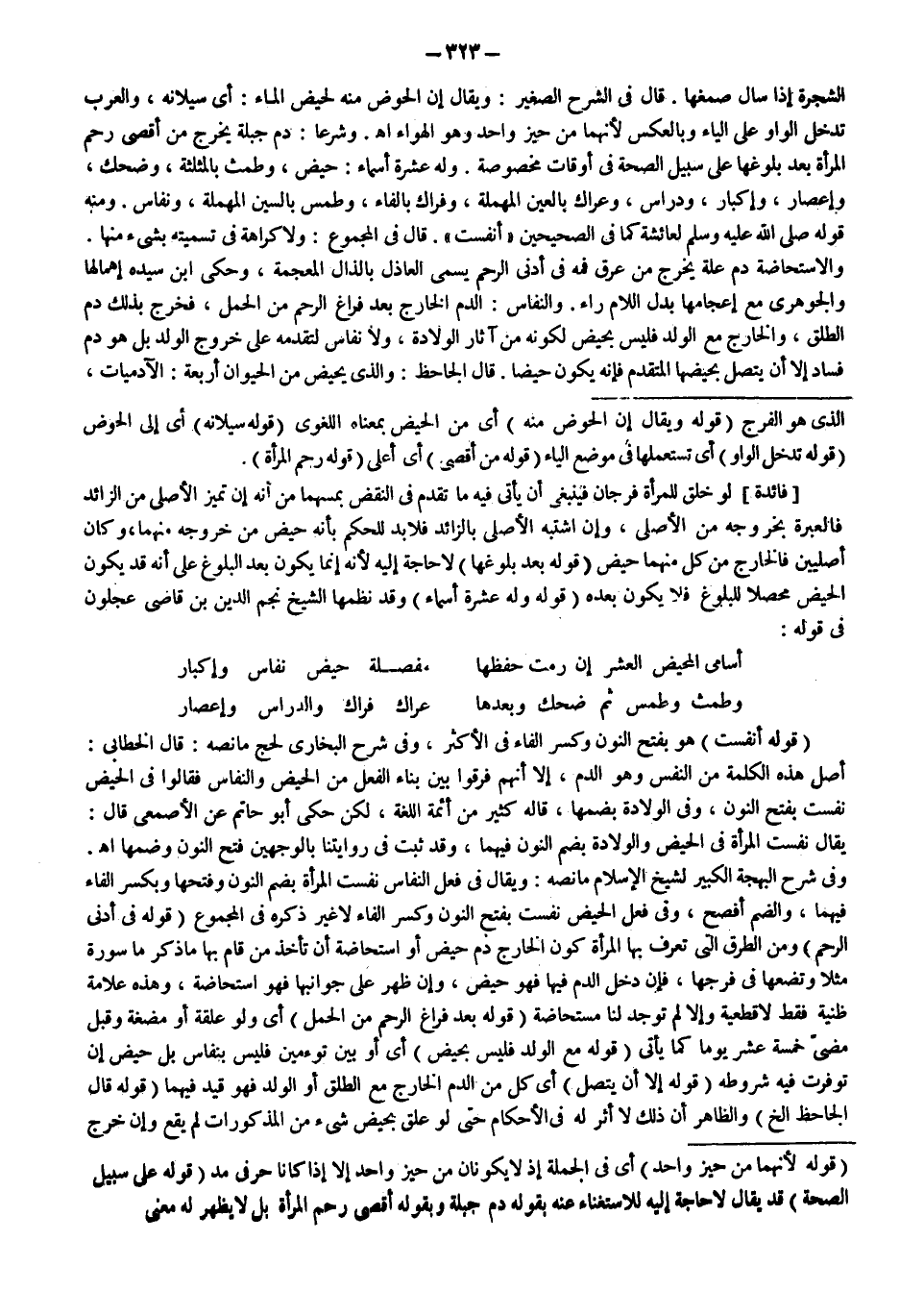 ـــــــــــــــــــــــــــــSالَّذِي هُوَ الْفَرْجُ (قَوْلُهُ: وَيُقَالُ إنَّ الْحَوْضَ مِنْهُ) أَيْ مِنْ الْحَيْضِ بِمَعْنَاهُ اللُّغَوِيِّ (قَوْلُهُ: سَيَلَانِهِ) أَيْ إلَى الْحَوْضِ (قَوْلُهُ: تُدْخِلُ الْوَاوَ) أَيْ تَسْتَعْمِلُهَا فِي مَوْضِعِ الْيَاءِ (قَوْلُهُ: مِنْ أَقْصَى) أَيْ أَعْلَى (قَوْلُهُ رَحِمِ الْمَرْأَةِ) .