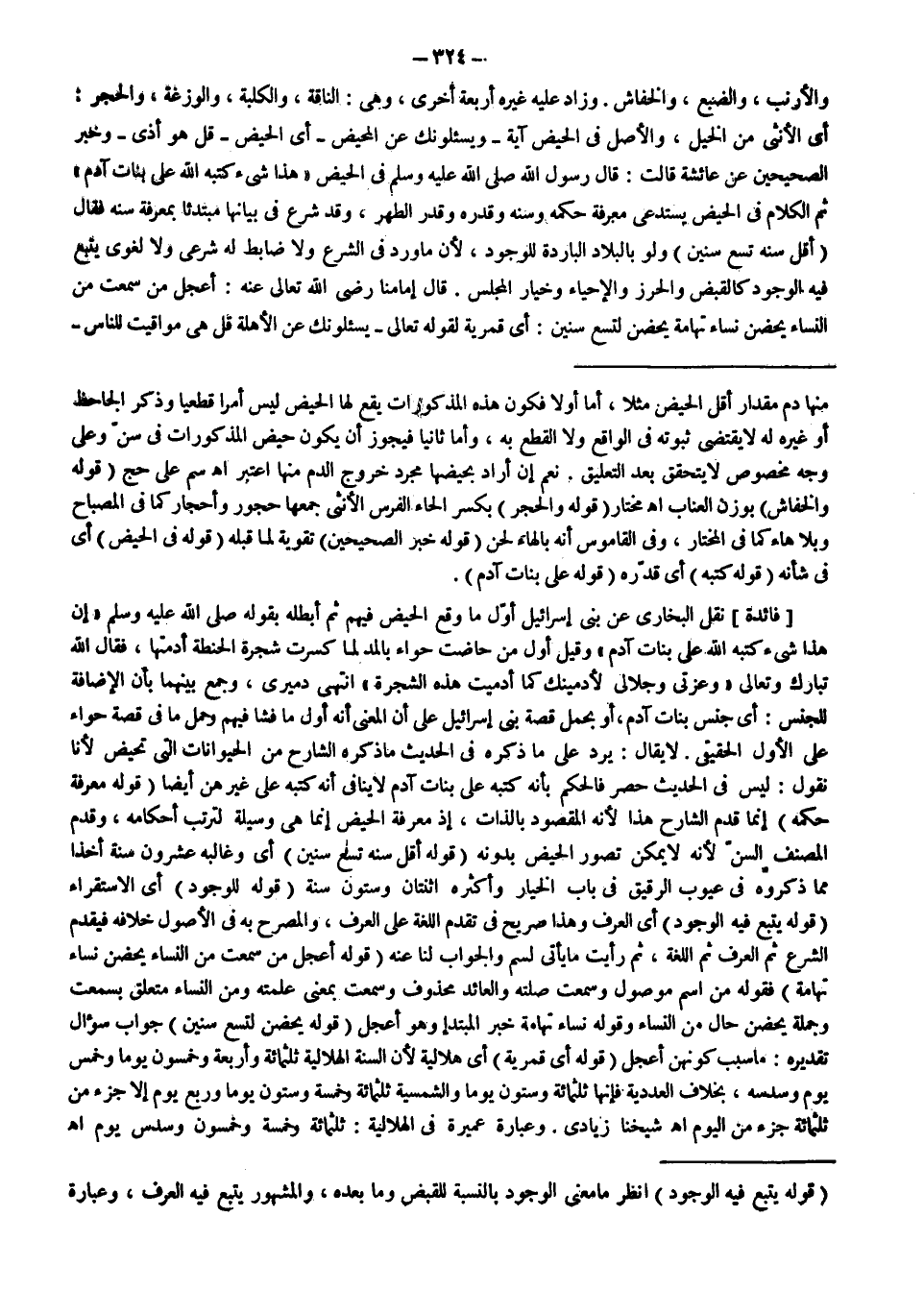 ـــــــــــــــــــــــــــــSمِنْهَا دَمُ مِقْدَارِ أَقَلِّ الْحَيْضِ مَثَلًا، أَمَّا أَوَّلًا فَكَوْنُ هَذِهِ الْمَذْكُورَاتِ يَقَعُ لَهَا الْحَيْضُ لَيْسَ أَمْرًا قَطْعِيًّا وَذِكْرُ الْجَاحِظِ أَوْ غَيْرِهِ لَهُ لَا يَقْتَضِي ثُبُوتَهُ فِي الْوَاقِعِ وَلَا الْقَطْعَ بِهِ، وَأَمَّا ثَانِيًا فَيَجُوزُ أَنْ يَكُونَ حَيْضُ الْمَذْكُورَاتِ فِي سِنٍّ وَعَلَى وَجْهٍ مَخْصُوصٍ لَا يَتَحَقَّقُ بَعْدَ التَّعْلِيقِ.
