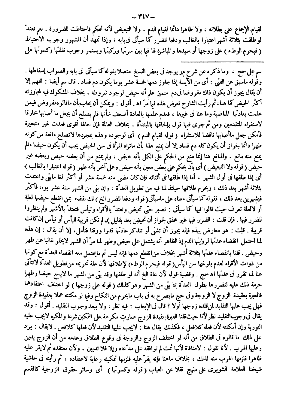 قُلْت: هُوَ مُعَارَضٌ بِهَذِهِ فَإِنَّهُ يَجُوزُ أَنْ تُشْفَى أَوْ تَتَذَكَّرَ عَادَتَهَا قَدْرًا وَوَقْتًا فَتَأَمَّلْ، إلَّا أَنْ يُقَالَ: إنَّ هَذِهِ لَمَّا اُحْتُمِلَ انْقِضَاءُ عِدَّتِهَا لِرُؤْيَتِهَا الدَّمَ إذْ الظَّاهِرُ أَنَّهُ يَشْتَمِلُ عَلَى حَيْضٍ وَطُهْرٍ لِمَا مَرَّ أَنَّ الشَّهْرَ لَا يَخْلُو غَالِبًا عَنْ طُهْرٍ وَحَيْضٍ.