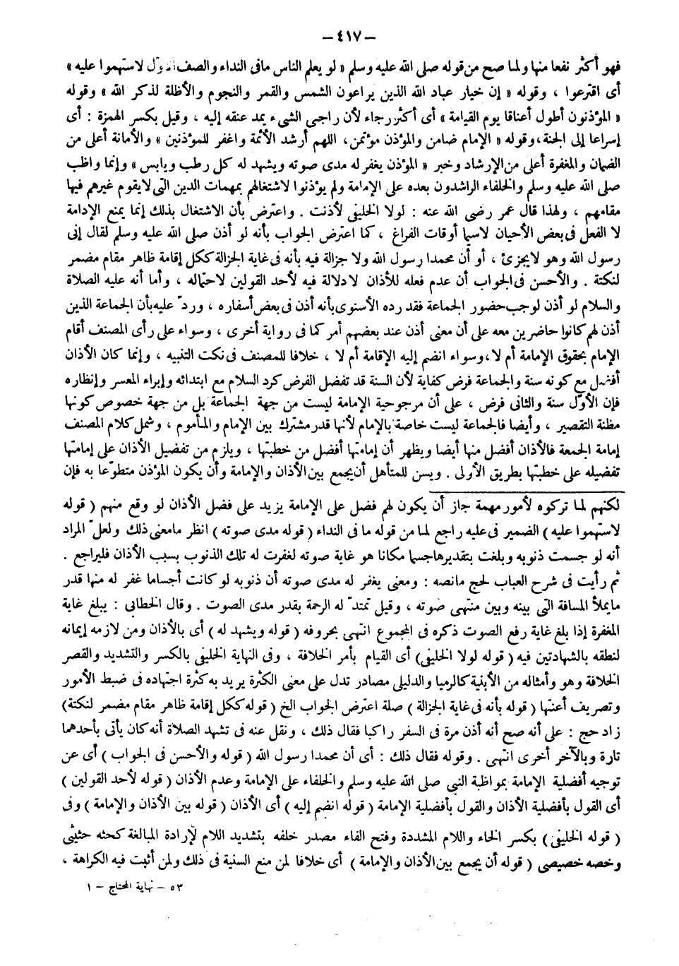 ـــــــــــــــــــــــــــــSلَكِنَّهُمْ لَمَّا تَرَكُوهُ لِأُمُورٍ مُهِمَّةٍ جَازَ أَنْ يَكُونَ لَهُمْ فَضْلٌ عَلَى الْإِمَامَةِ يَزِيدُ عَلَى فَضْلِ الْأَذَانِ لَوْ وَقَعَ مِنْهُمْ.