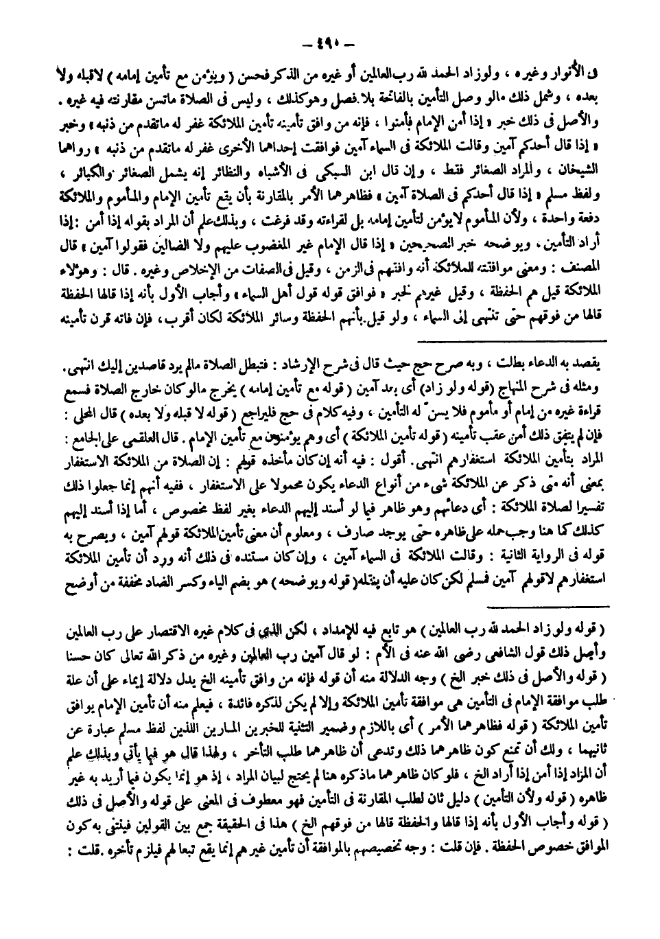 أَقُولُ: فِيهِ أَنَّهُ إنْ كَانَ مَأْخَذُهُ قَوْلَهُمْ: إنَّ الصَّلَاةَ مِنْ الْمَلَائِكَةِ الِاسْتِغْفَارُ بِمَعْنَى أَنَّهُ مَتَى ذُكِرَ عَنْ الْمَلَائِكَةِ شَيْءٌ مِنْ أَنْوَاعِ الدُّعَاءِ يَكُونُ مَحْمُولًا عَلَى الِاسْتِغْفَارِ، فَفِيهِ أَنَّهُمْ إنَّمَا جَعَلُوا ذَلِكَ تَفْسِيرًا لِصَلَاةِ الْمَلَائِكَةِ: أَيْ دُعَائِهِمْ وَهُوَ ظَاهِرٌ فِيمَا لَوْ أَسْنَدَ إلَيْهِمْ الدُّعَاءَ بِغَيْرِ لَفْظٍ مَخْصُوصٍ، أَمَّا إذَا أَسْنَدَ إلَيْهِمْ كَذَلِكَ كَمَا هُنَا وَجَبَ حَمْلُهُ عَلَى ظَاهِرِهِ حَتَّى يُوجَدَ صَارِفٌ، وَمَعْلُومٌ أَنَّ مَعْنَى تَأْمِينِ الْمَلَائِكَةِ قَوْلُهُمْ آمِينَ، وَيُصَرِّحُ بِهِ قَوْلُهُ فِي الرِّوَايَةِ الثَّانِيَةِ: وَقَالَتْ الْمَلَائِكَةُ فِي السَّمَاءِ آمِينَ، وَإِنْ كَانَ مُسْتَنَدُهُ فِي ذَلِكَ أَنَّهُ وَرَدَ أَنَّ تَأْمِينَ الْمَلَائِكَةِ اسْتِغْفَارُهُمْ لَا قَوْلُهُمْ آمِينَ فَمُسَلَّمٌ لَكِنْ كَانَ عَلَيْهِ أَنْ يَنْقُلَهُ (قَوْلُهُ وَيُوضِحُهُ) هُوَ بِضَمِّ الْيَاءِ وَكَسْرِ الضَّادِ مُخَفَّفَةٌ مِنْ أَوْضَحَ