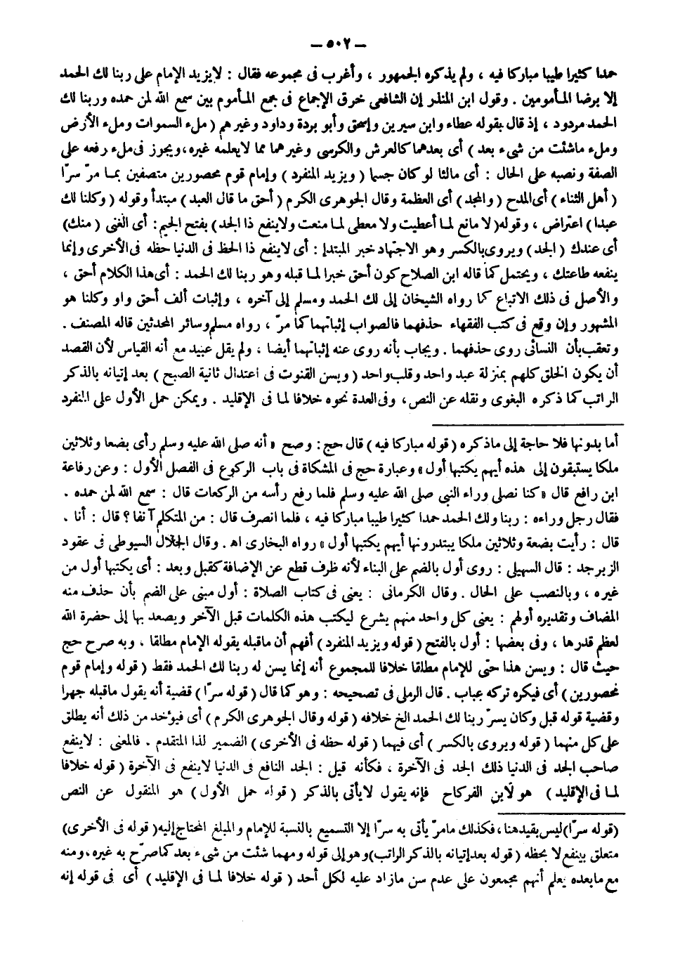 حَمْدًا كَثِيرًا طَيِّبًا مُبَارَكًا فِيهِ، وَلَمْ يَذْكُرْهُ الْجُمْهُورُ، وَأَغْرَبَ فِي مَجْمُوعِهِ فَقَالَ: لَا يَزِيدُ الْإِمَامُ عَلَى رَبَّنَا لَك الْحَمْدُ إلَّا بِرِضَا الْمَأْمُومِينَ.