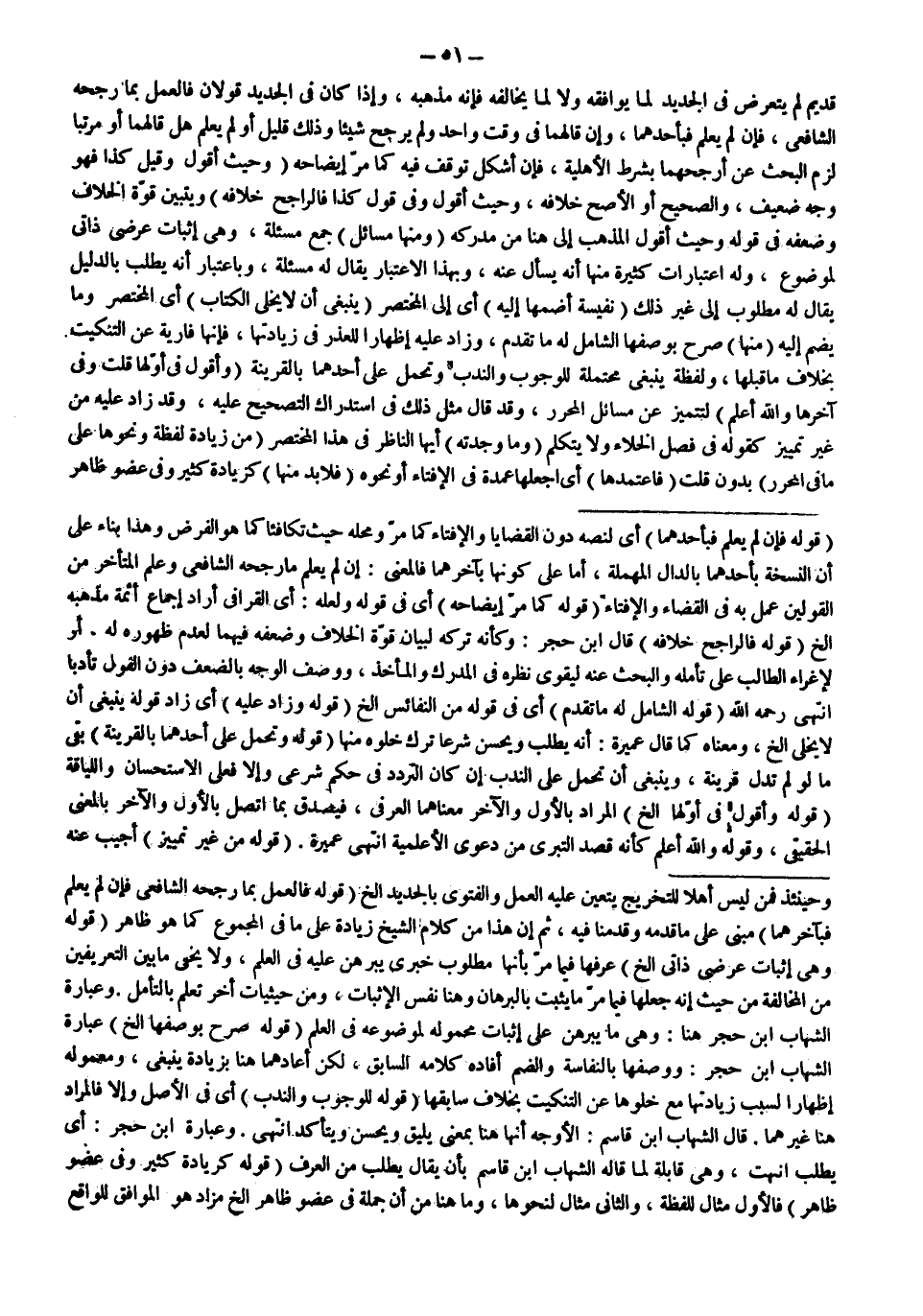 (يَنْبَغِي أَنْ لَا يُخْلَى الْكِتَابُ) أَيْ الْمُخْتَصَرُ وَمَا يُضَمُّ إلَيْهِ (مِنْهَا) صَرَّحَ بِوَصْفِهَا الشَّامِلِ لَهُ مَا تَقَدَّمَ، وَزَادَ عَلَيْهِ إظْهَارًا لِلْعُذْرِ فِي زِيَادَتِهَا، فَإِنَّهَا فَارِيَةٌ عَنْ التَّنْكِيتِ بِخِلَافِ مَا قَبْلَهَا، وَلَفْظَةُ يَنْبَغِي مُحْتَمِلَةٌ لِلْوُجُوبِ وَالنَّدْبِ وَتُحْمَلُ عَلَى أَحَدِهِمَا بِالْقَرِينَةِ (وَأَقُولُ فِي أَوَّلِهَا قُلْت وَفِي آخِرِهَا وَاَللَّهُ أَعْلَمُ) لِتَتَمَيَّزَ عَنْ مَسَائِلِ الْمُحَرَّرِ، وَقَدْ قَالَ مِثْلَ ذَلِكَ فِي اسْتِدْرَاكِ التَّصْحِيحِ عَلَيْهِ، وَقَدْ زَادَ عَلَيْهِ مِنْ غَيْرِ تَمْيِيزٍ كَقَوْلِهِ فِي فَصْلِ الْخَلَاءِ وَلَا يَتَكَلَّمُ (وَمَا وَجَدْته) أَيُّهَا النَّاظِرُ فِي هَذَا الْمُخْتَصَرِ (مِنْ زِيَادَةِ لَفْظَةٍ وَنَحْوِهَا عَلَى مَا فِي الْمُحَرَّرِ) بِدُونِ قُلْت (فَاعْتَمِدْهَا) أَيْ اجْعَلْهَا عُمْدَةً فِي الْإِفْتَاءِ أَوْ نَحْوِهِ (فَلَا بُدَّ مِنْهَا) كَزِيَادَةِ كَثِيرٍ وَفِي عُضْوٍ ظَاهِرٍ