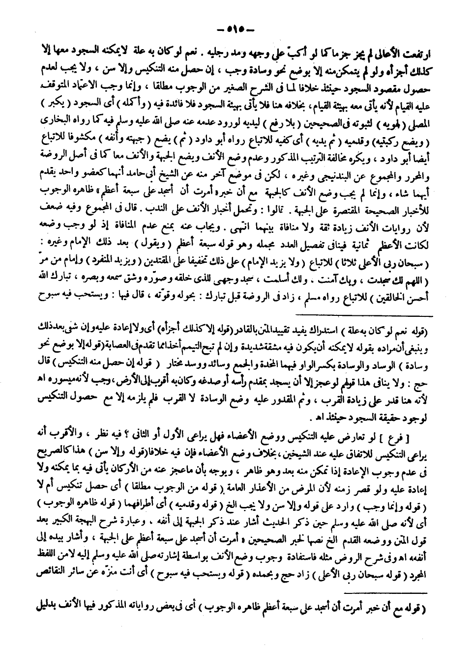 ـــــــــــــــــــــــــــــQ (قَوْلُهُ: مَعَ أَنَّ خَبَرَ «أُمِرْت أَنْ أَسْجُدَ عَلَى سَبْعَةِ أَعْظُمٍ» ظَاهِرُهُ الْوُجُوبُ) أَيْ فِي بَعْضِ رِوَايَاتِهِ الْمَذْكُورِ فِيهَا الْأَنْفُ بِدَلِيلِ