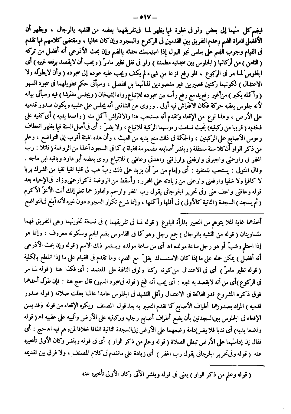 ـــــــــــــــــــــــــــــSأَخَذَهُمَا غَايَةً لِئَلَّا يُتَوَهَّمَ مِنْ التَّعْبِيرِ بِالْمَرْأَةِ الْبُلُوغُ (قَوْلُهُ لِمَا فِي تَفْرِيقِهِمَا) فِي نُسْخَةِ تَخْوِيتِهِمَا وَهِيَ التَّفْرِيقُ فَهُمَا مُتَسَاوِيَتَانِ (قَوْلُهُ: مِنْ التَّشَبُّهِ بِالرِّجَالِ) جَمْعُ رَجُلٍ وَهُوَ كَمَا فِي الْقَامُوسِ بِضَمِّ الْجِيمِ وَسُكُونُهُ مَعْرُوفٌ، وَإِنَّمَا هُوَ إذَا احْتَلَمَ وَشَبَّ أَوْ هُوَ رَجُلٌ سَاعَةَ مَوْلِدِهِ اهـ أَيْ مِنْ سَاعَةِ مَوْلِدِهِ وَيَسْتَمِرُّ ذَلِكَ الِاسْمُ (قَوْلُهُ: وَإِنْ بَحَثَ الْأَذْرَعِيُّ أَنَّهُ أَفْضَلُ) يُمْكِنُ حَمْلُهُ عَلَى مَا إذَا كَانَ الِاسْتِمْسَاكُ يَقِلُّ مَعَ الضَّمِّ، وَمَا تَقَدَّمَ فِي الْقِيَامِ عَلَى مَا إذَا انْقَطَعَ بِالْكُلِّيَّةِ.