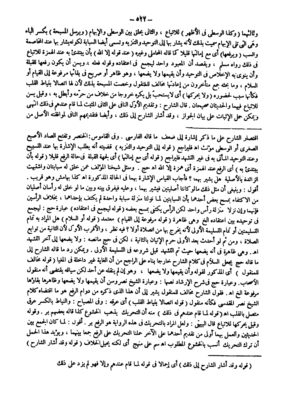 وَيُمْكِنُ رَدُّ مَا قَالَهُ الشَّارِحُ إلَى مَا قَالَهُ حَجّ يُجْعَلُ السَّلَامُ فِي كَلَامِ الشَّارِحِ خَارِجًا بِنَاءً عَلَى الرَّاجِحِ مِنْ أَنَّ الْغَايَةَ غَيْرُ دَاخِلَةٍ فِي الْمُغَيَّا (قَوْلُهُ: مُخَالِفٌ لِلْمَنْقُولِ) أَيْ الْمَذْكُورِ لِقَوْلِهِ وَأَنْ يُقِيمَهَا وَلَا يَضَعَهَا، وَهُوَ إنْ لَمْ يَنْقُلْهُ عَنْ أَحَدٍ لَكِنَّ سِيَاقَهُ يَقْتَضِي أَنَّ مَنْقُولَ الْأَصْحَابِ.