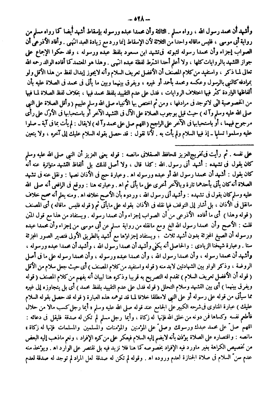 ثُمَّ رَأَيْت فِي تَخْرِيجِ الْعَزِيزِ لِلْحَافِظِ الْعَسْقَلَانِيِّ مَا نَصُّهُ: قَوْلُهُ يَعْنِي الْعَزِيزَ «أَنَّ النَّبِيَّ - صَلَّى اللَّهُ عَلَيْهِ وَسَلَّمَ - كَانَ يَقُولُ فِي تَشَهُّدِهِ: أَشْهَدُ أَنَّى رَسُولُ اللَّهِ» : كَذَا قَالَ، وَلَا أَصْلَ لِذَلِكَ بَلْ أَلْفَاظُ التَّشَهُّدِ مُتَوَاتِرَةٌ عَنْهُ أَنَّهُ كَانَ يَقُولُ: «أَشْهَدُ أَنَّ مُحَمَّدًا رَسُولُ اللَّهِ أَوْ عَبْدُهُ وَرَسُولُهُ» اهـ.