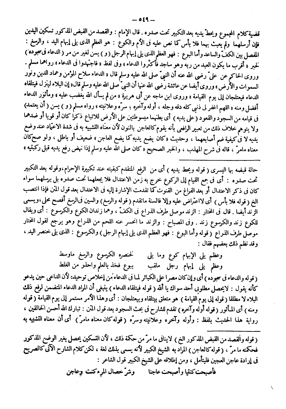 قَضِيَّةُ كَلَامِ الْمَجْمُوعِ وَيَحُطُّ يَدَيْهِ بَعْدَ التَّكْبِيرِ تَحْتَ صَدْرِهِ.