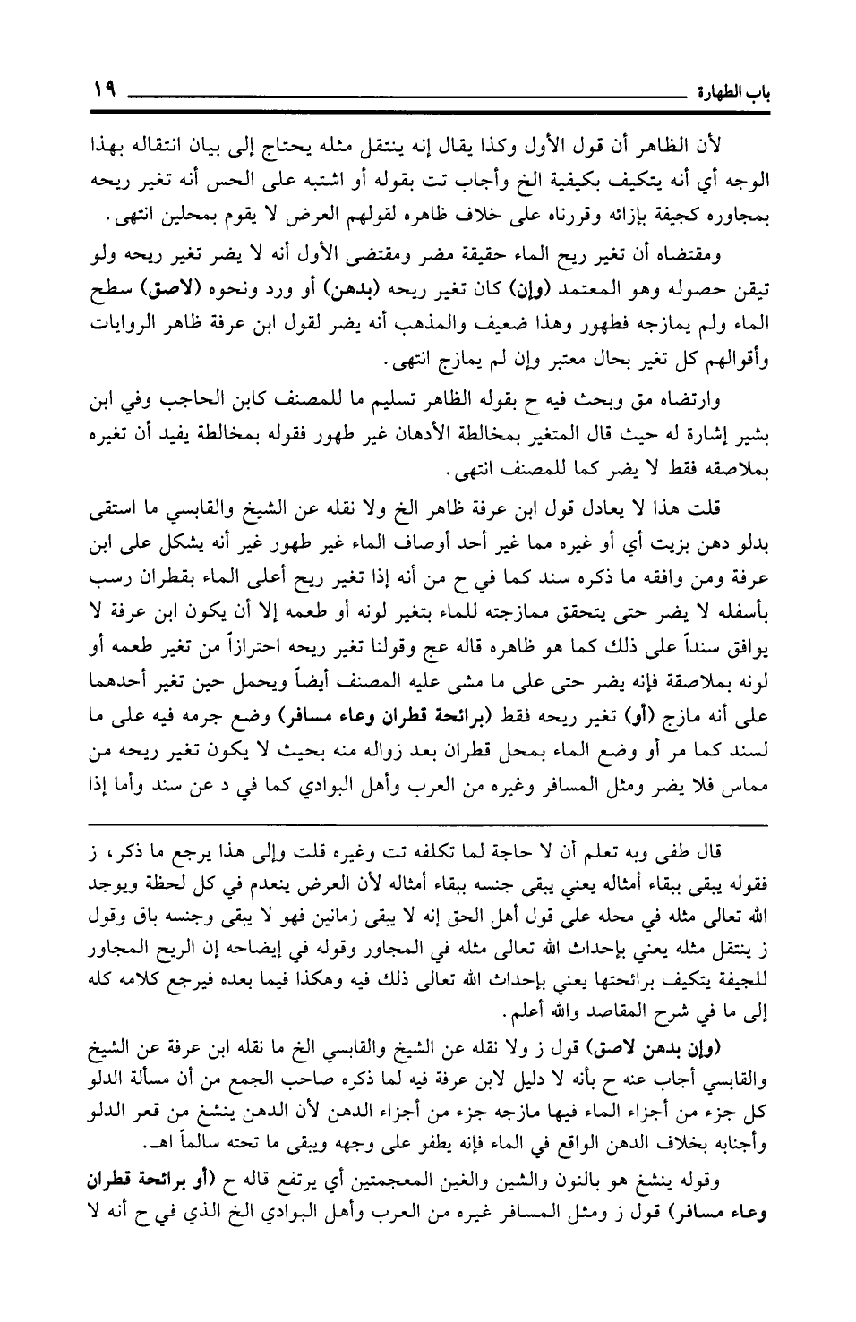 وارتضاه مق وبحث فيه ح بقوله الظاهر تسليم ما للمصنف كابن الحاجب وفي ابن بشير إشارة له حيث قال المتغير بمخالطة الأدهان غير طهور فقوله بمخالطة يفيد أن تغيره بملاصقه فقط لا يضر كما للمصنف انتهى.