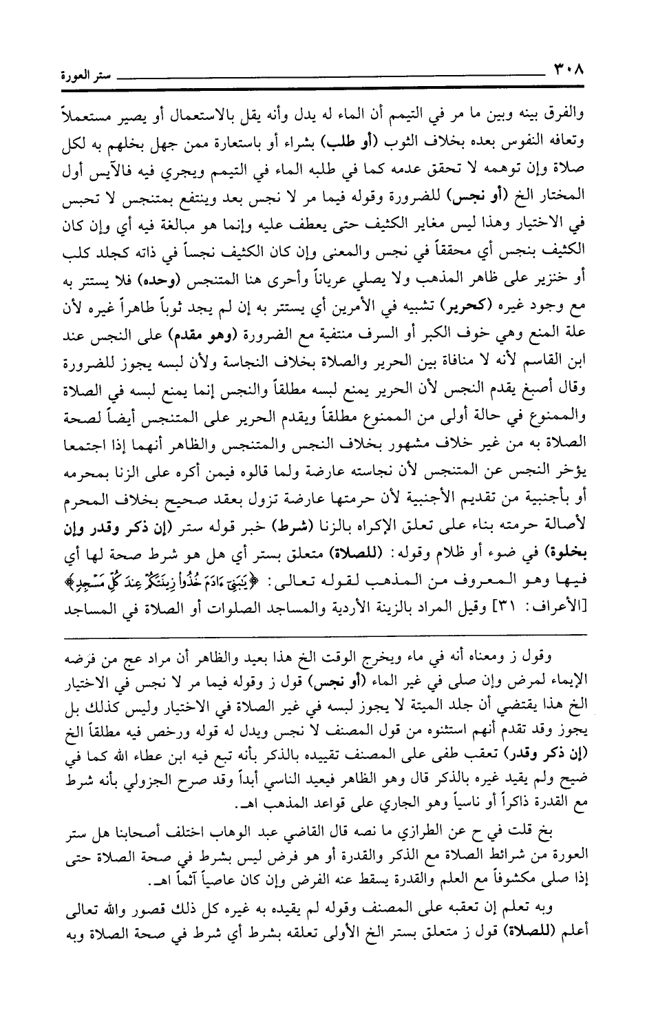 بخ قلت في ح عن الطرازي ما نصه قال القاضي عبد الوهاب اختلف أصحابنا هل ستر العورة من شرائط الصلاة مع الذكر والقدرة أو هو فرض ليس بشرط في صحة الصلاة حتى إذا صلى مكشوفًا مع العلم والقدرة يسقط عنه الفرض وإن كان عاصيًا آثمًا اهـ.
