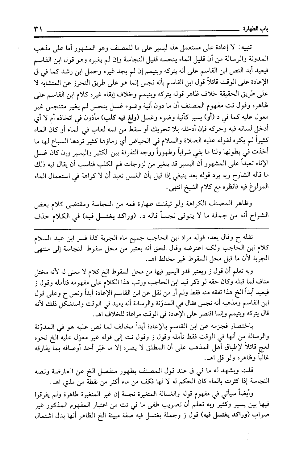 قلت ويشهد له ما في ق عند قول المصنف بطهور منفصل الخ عن العارضة ونصه النجاسة إذا كثرت بالماء كان الحكم له لا لها فكف من ماء أكثر من نقطة من مذي اهـ.