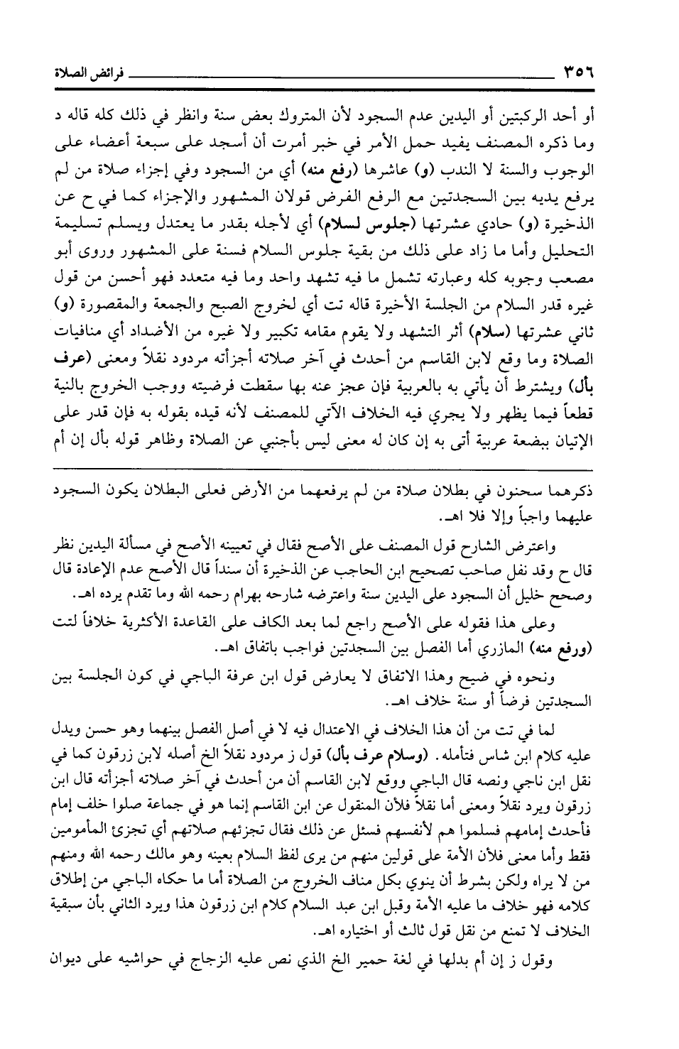 لما في تت من أن هذا الخلاف في الاعتدال فيه لا في أصل الفصل بينهما وهو حسن ويدل عليه كلام ابن شاس فتأمله. (وسلام عرف بأل) قول ز مردود نقلًا الخ أصله لابن زرقون كما في نقل ابن ناجي ونصه قال الباجي ووقع لابن القاسم أن من أحدث في آخر صلاته أجزأته قال ابن زرقون ويرد نقلًا ومعنى أما نقلًا فلأن المنقول عن ابن القاسم إنما هو في جماعة صلوا خلف إمام فأحدث إمامهم فسلموا هم لأنفسهم فسئل عن ذلك فقال تجزئهم صلاتهم أي تجزئ المأمومين فقط وأما معنى فلأن الأمة على قولين منهم من يرى لفظ السلام بعينه وهو مالك رحمه الله ومنهم من لا يراه ولكن بشرط أن ينوي بكل مناف الخروج من الصلاة أما ما حكاه الباجي من إطلاق كلامه فهو خلاف ما عليه الأمة وقبل ابن عبد السلام كلام ابن زرقون هذا ويرد الثاني بأن سبقية الخلاف لا تمنع من نقل قول ثالث أو اختياره اهـ.
