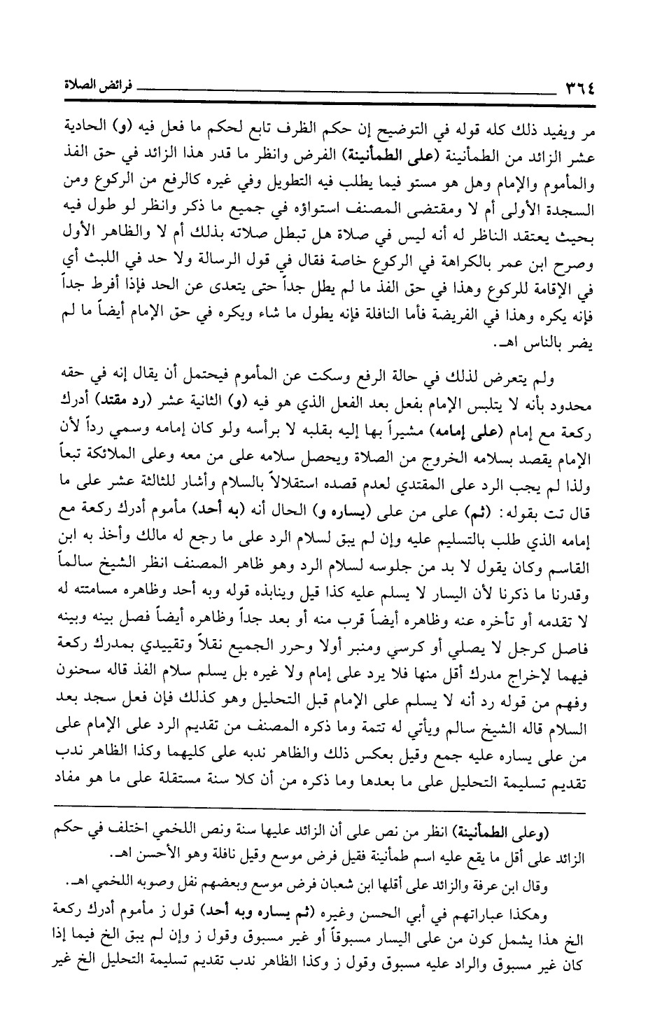 مر ويفيد ذلك كله قوله في التوضيح إن حكم الظرف تابع لحكم ما فعل فيه (و) الحادية عشر الزائد من الطمأنينة (على الطمأنينة) الفرض وانظر ما قدر هذا الزائد في حق الفذ والمأموم والإمام وهل هو مستو فيما يطلب فيه التطويل وفي غيره كالرفع من الركوع ومن السجدة الأولى أم لا ومقتضى المصنف استواؤه في جميع ما ذكر وانظر لو طول فيه بحيث يعتقد الناظر له أنه ليس في صلاة هل تبطل صلاته بذلك أم لا والظاهر الأول وصرح ابن عمر بالكراهة في الركوع خاصة فقال في قول الرسالة ولا حد في اللبث أي في الإقامة للركوع وهذا في حق الفذ ما لم يطل جدًّا حتى يتعدى عن الحد فإذا أفرط جدًّا فإنه يكره وهذا في الفريضة فأما النافلة فإنه يطول ما شاء ويكره في حق الإمام أيضًا ما لم يضر بالناس اهـ.
