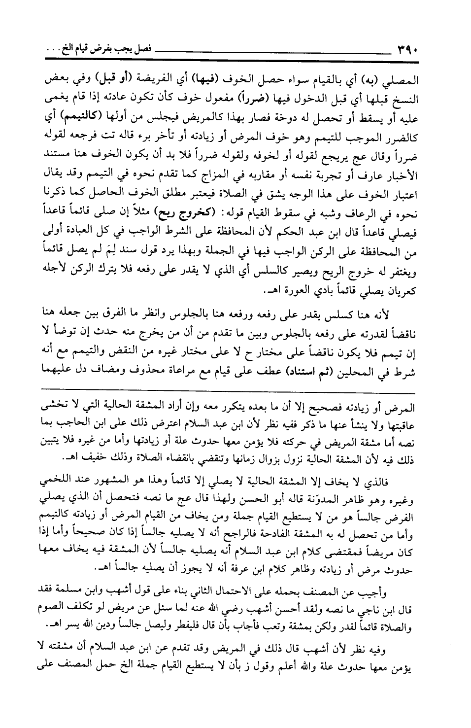 وفيه نظر لأن أشهب قال ذلك في المريض وقد تقدم عن ابن عبد السلام أن مشقته لا يؤمن معها حدوث علة والله أعلم وقول ز بأن لا يستطيع القيام جملة الخ حمل المصنف على
