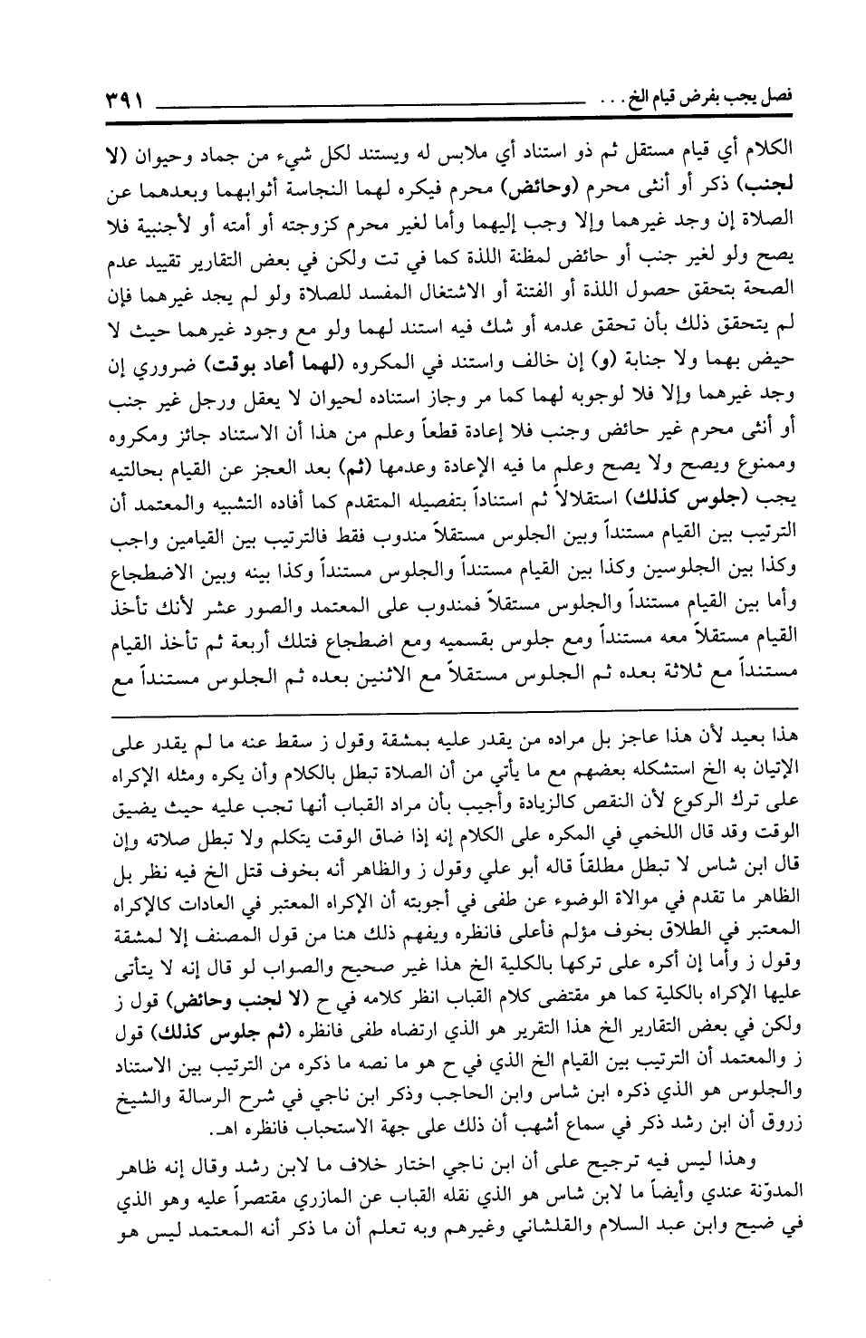 وهذا ليس فيه ترجيح على أن ابن ناجي اختار خلاف ما لابن رشد وقال إنه ظاهر المدوّنة عندي وأيضًا ما لابن شاس هو الذي نقله القباب عن المازري مقتصرًا عليه وهو الذي في ضيح وابن عبد السلام والقلشاني وغيرهم وبه تعلم أن ما ذكر أنه المعتمد ليس هو