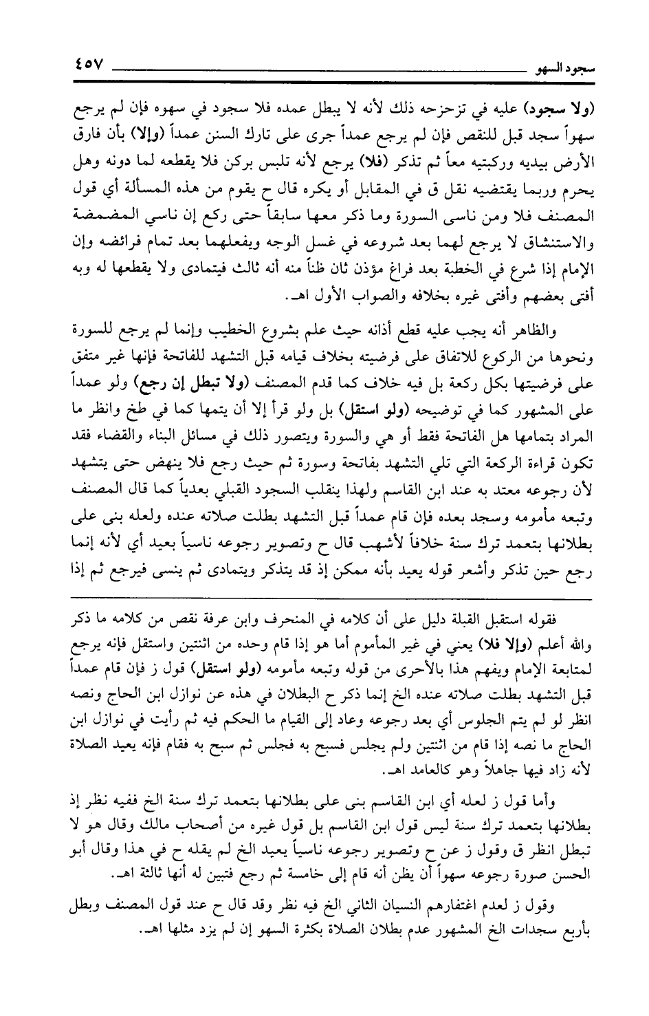 وقول ز لعدم اغتفارهم النسيان الثاني الخ فيه نظر وقد قال ح عند قول المصنف وبطل بأربع سجدات الخ المشهور عدم بطلان الصلاة بكثرة السهو إن لم يزد مثلها اهـ.